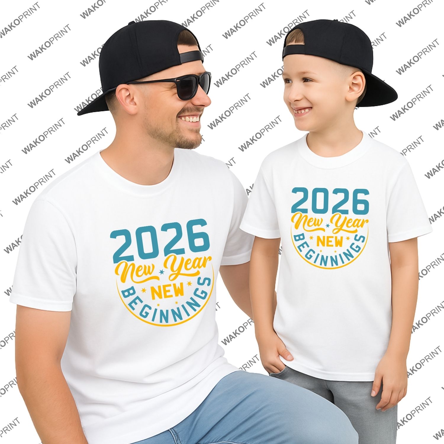 2026 New Year T-Shirt – Family Matching Tees | New Beginnings Celebration Shirts for Men, Women & Kids