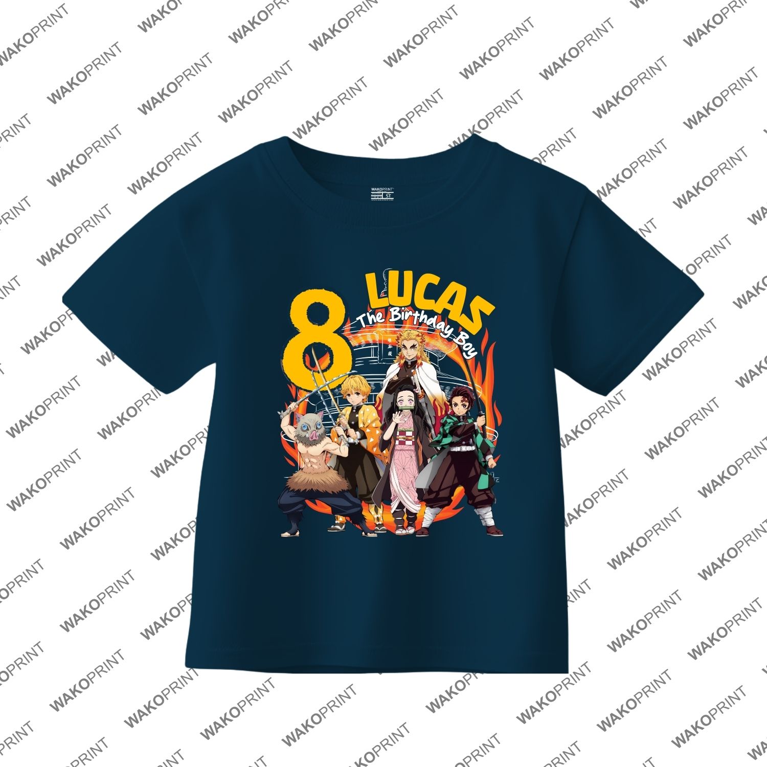Personalized Demon Tanjiro and Nezuko Birthday t-Shirts with Age and Name for The Whole Family, Slayerdemon Fans, Black and White Anime t-Shirts.