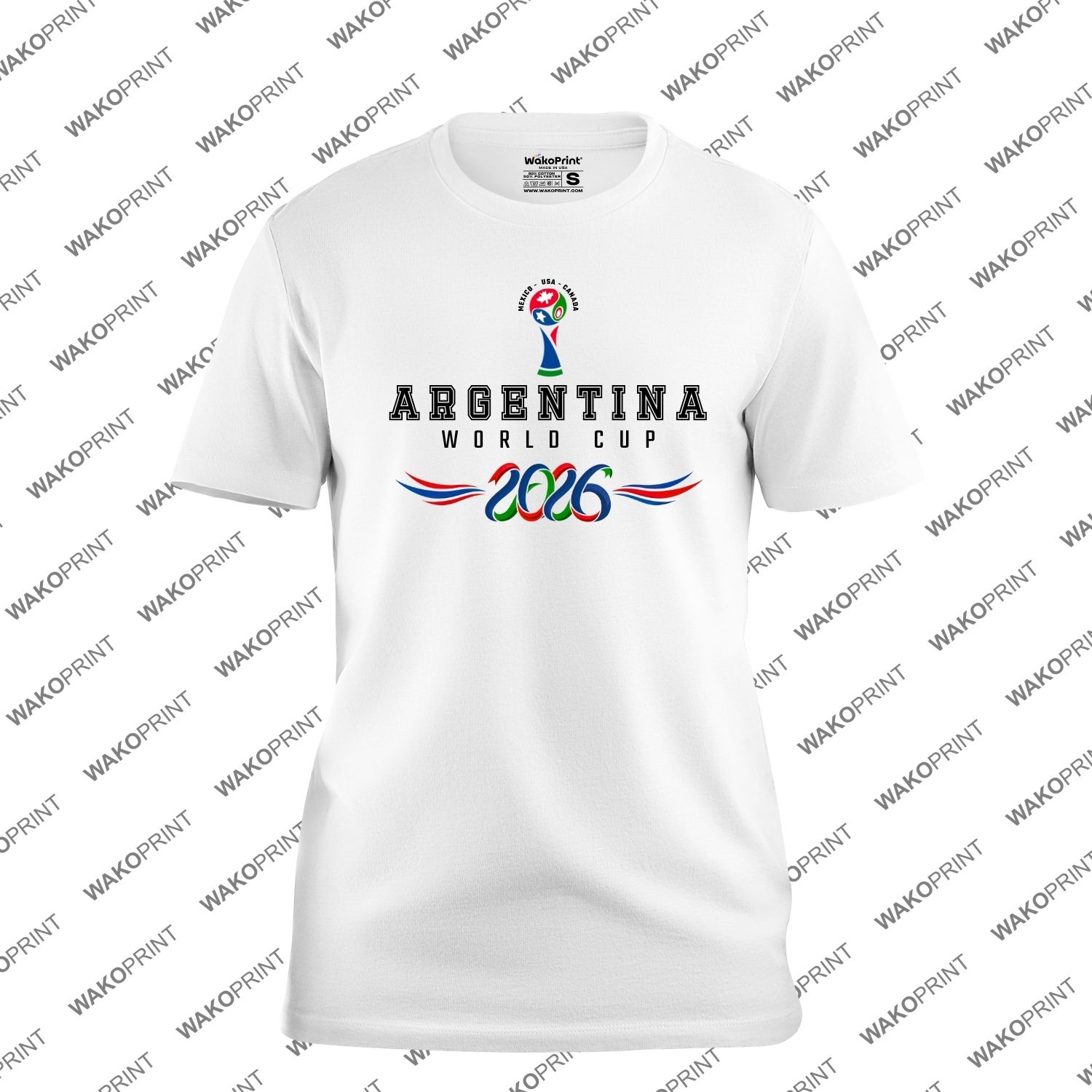 Celebrate your passion for soccer with this Argentina Copa Mundial 2026 fan shirt featuring bold lettering inspired by national colors and a championship style trophy graphic. Perfect for the 2026 international soccer tournament watch parties stadium events and family gatherings.