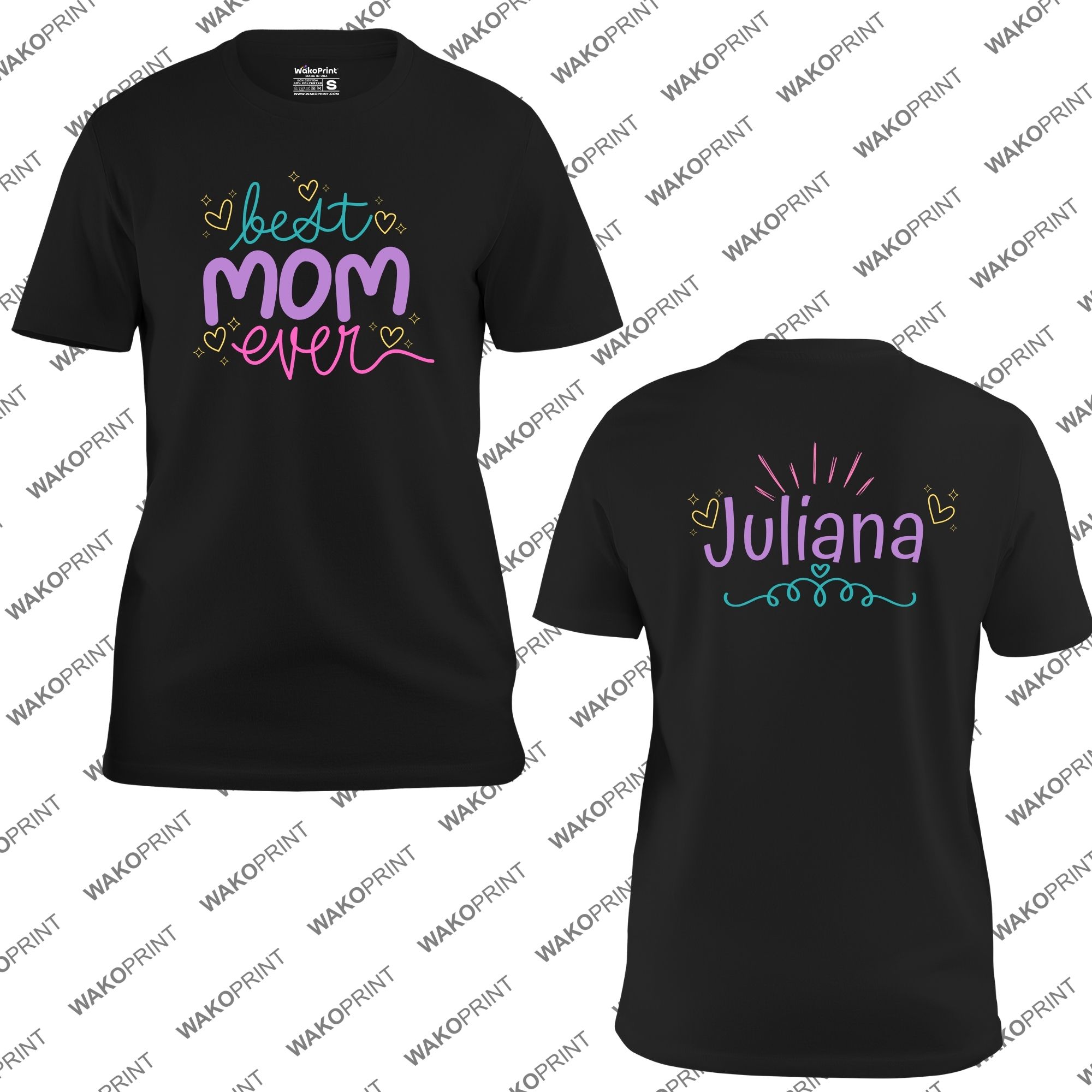 Home Holidays & Celebrations Mother's Day Best Mom Ever T-Shirt | Personalized Mother’s Day Gift | Customizable Text and Name on Back | Cotton Blend Graphic Tee | Black or White | Unisex Fit S–4XL | Cute Gift for Mom