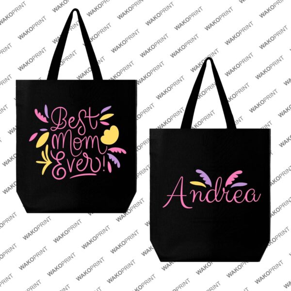 Personalized Best Mom Ever Tote Bag | Custom Name Option | Reusable Black Canvas Bag | Add Text on Back | Perfect for Mothers and Women