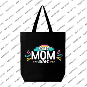 Personalized Best Mom Ever Tote Bag | Custom Name Option | Reusable Black Canvas Bag | Add Text on Back | Perfect Mother’s Day Gift for Moms and Women