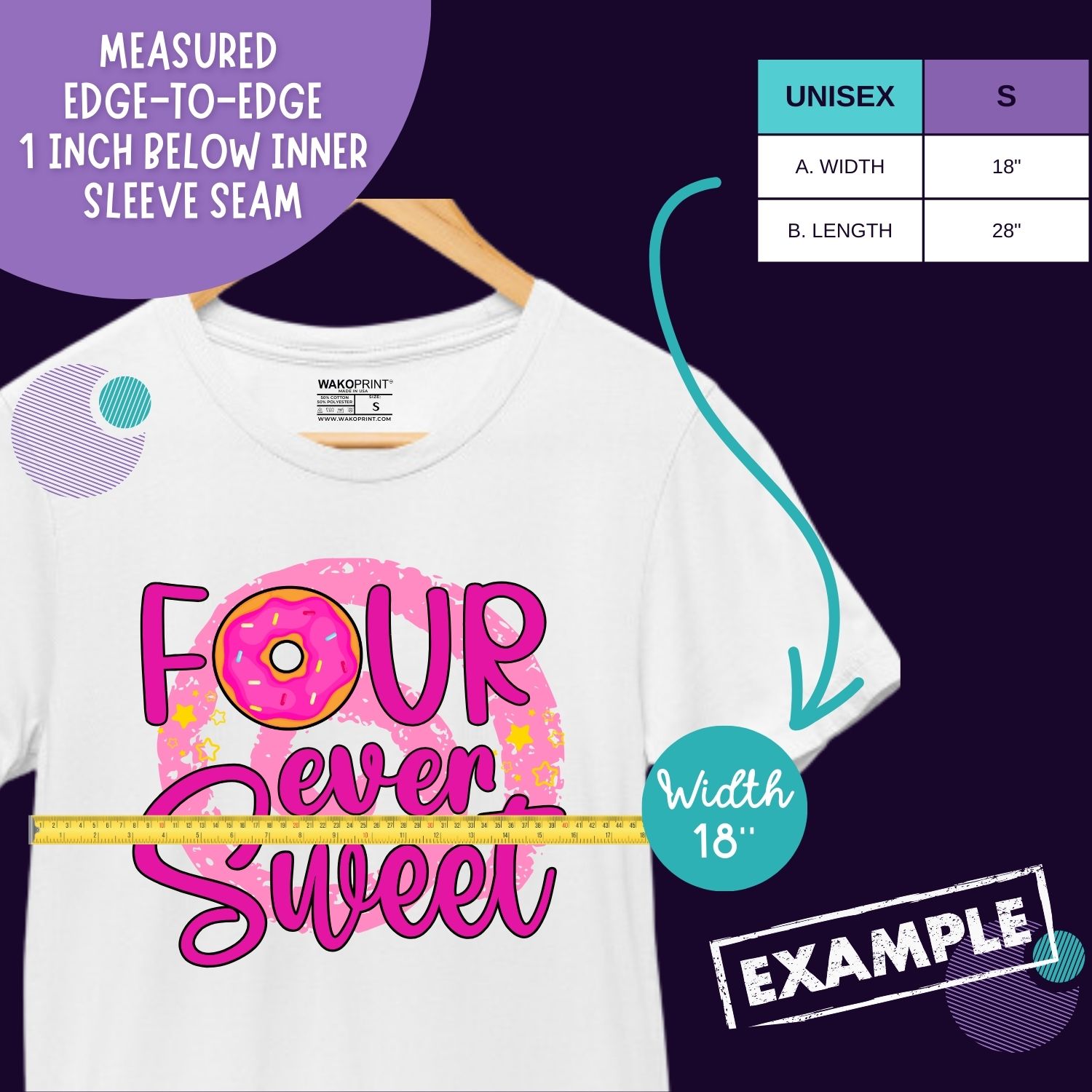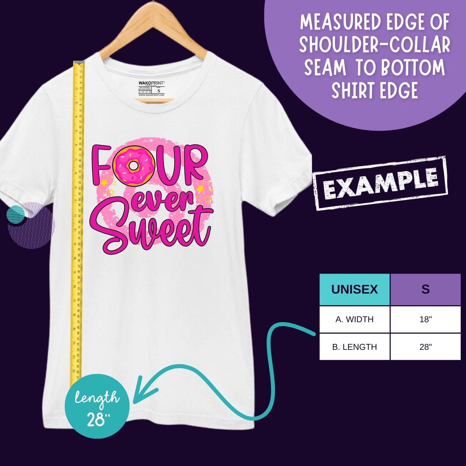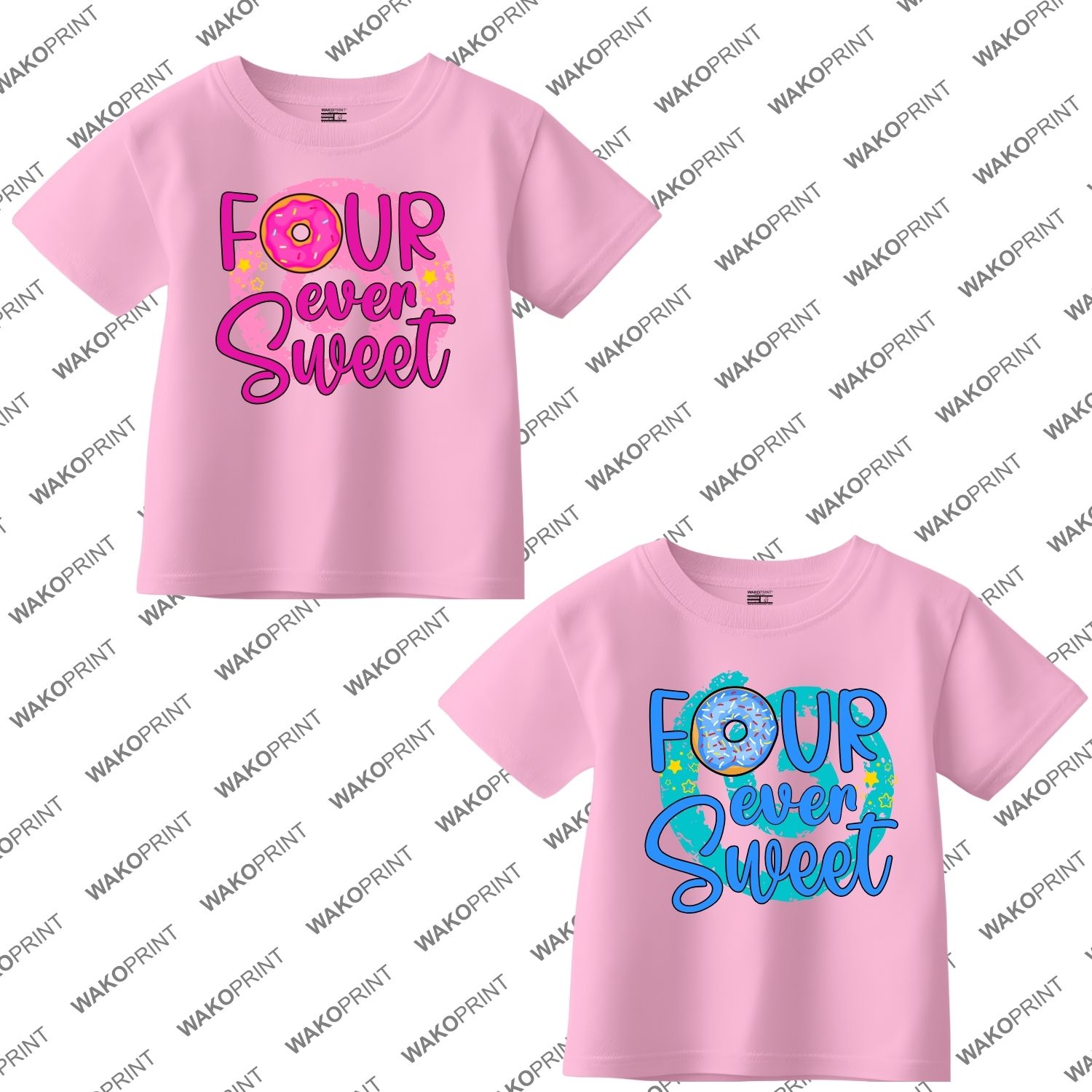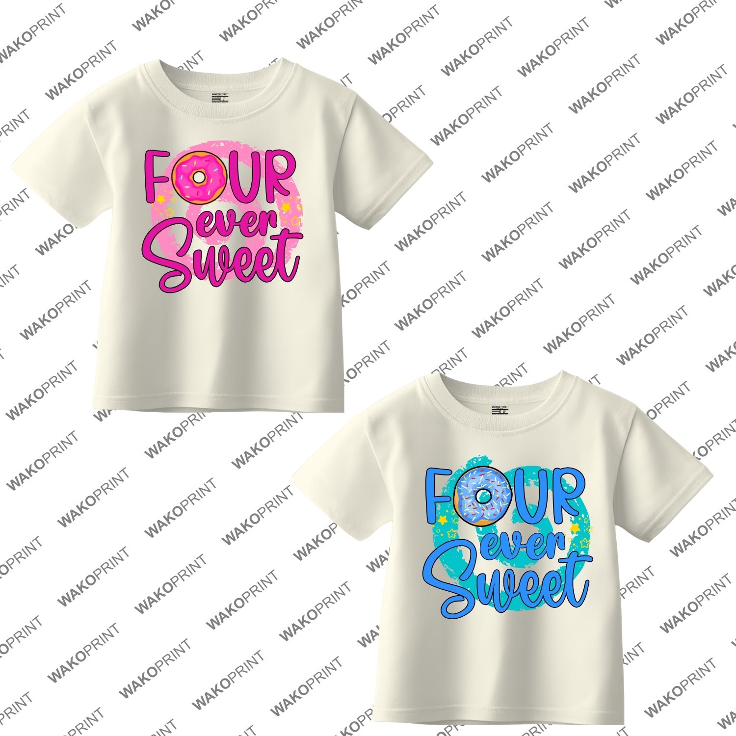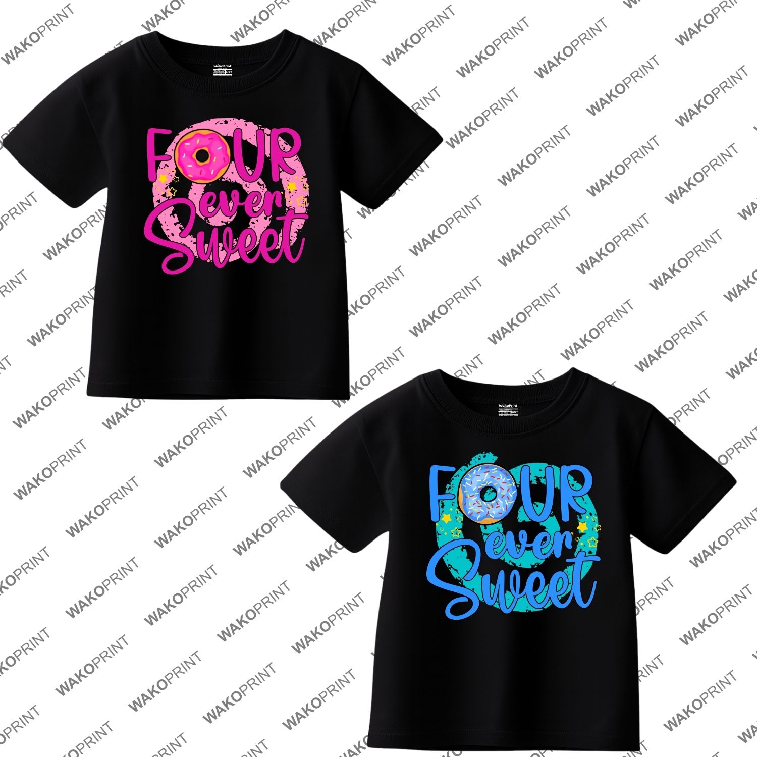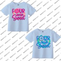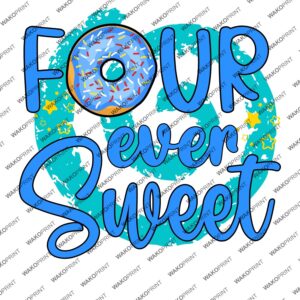 Personalized “Four Ever Sweet” Birthday Shirt for Kids | Custom Name and Age | Donut Theme Birthday Tee | Add Text on Back 6M–4XL | 5 Colors Available White, Black