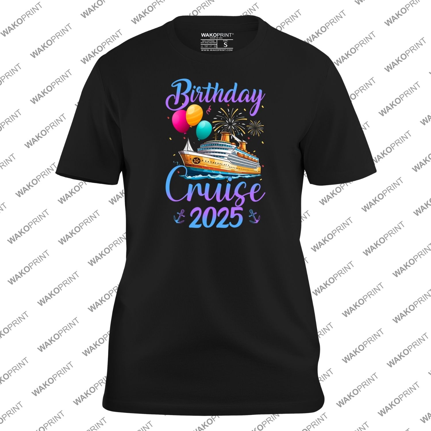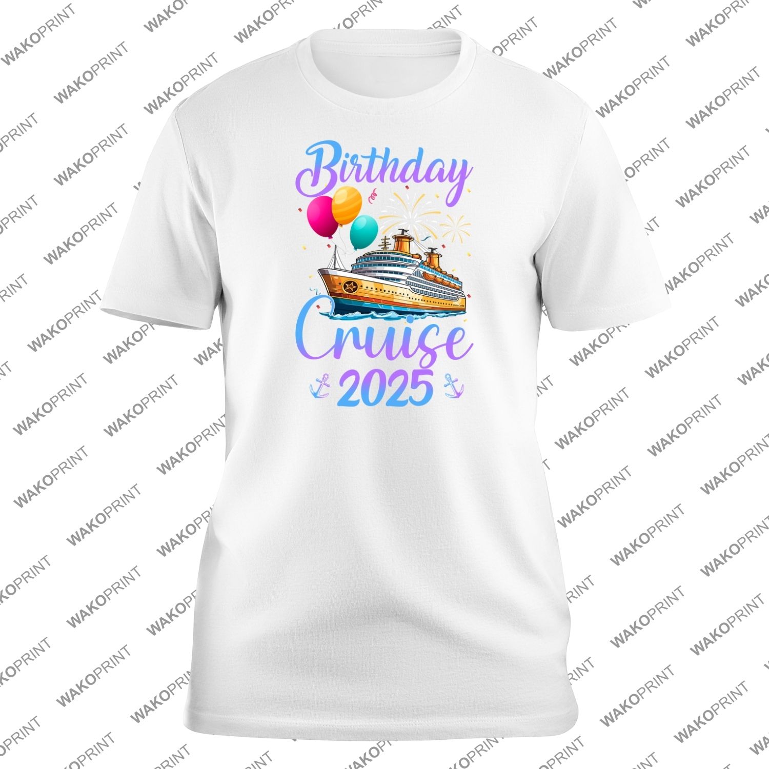 Birthday Cruise 2025 Shirt – Family Matching Cruise Trip T-Shirt – Birthday Vacation Outfit – Cruise Party Tee for Men Women Kids White,Black
