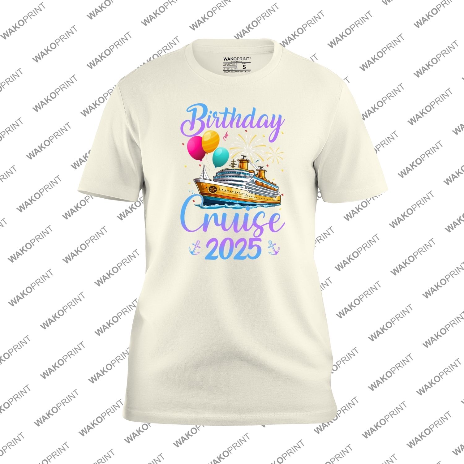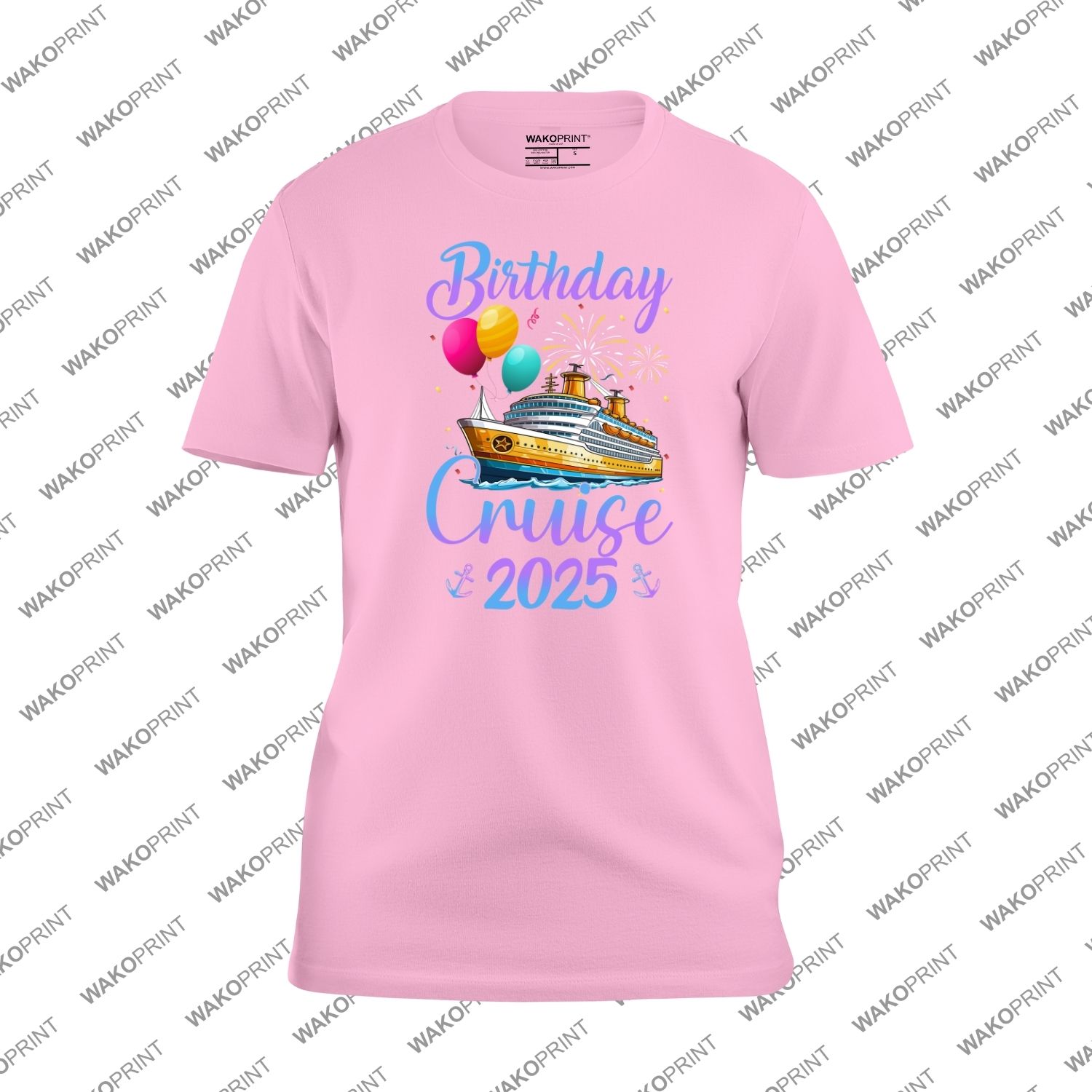 Celebrate your birthday in cruise style! This fun Birthday Cruise 2025 shirt is perfect for celebrating at sea, featuring a cheerful cruise ship, balloons, and fireworks. Available in sizes from 6 months to 4XL, so the whole family can match and join the birthday crew. Ideal for birthday cruises, vacation photos, onboard parties, or as a special keepsake of your ocean adventure.