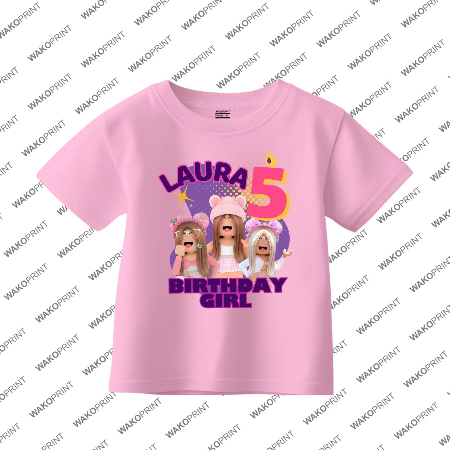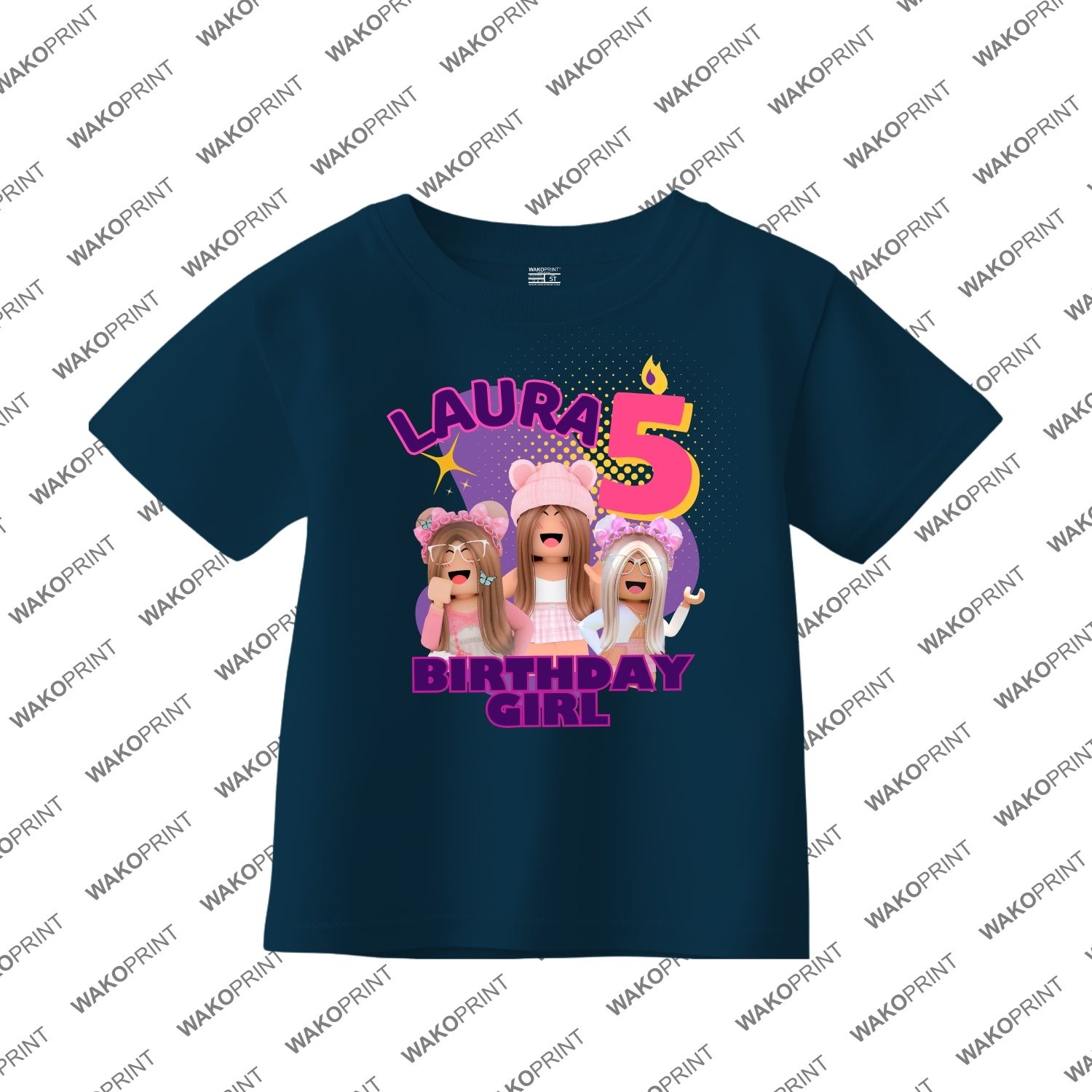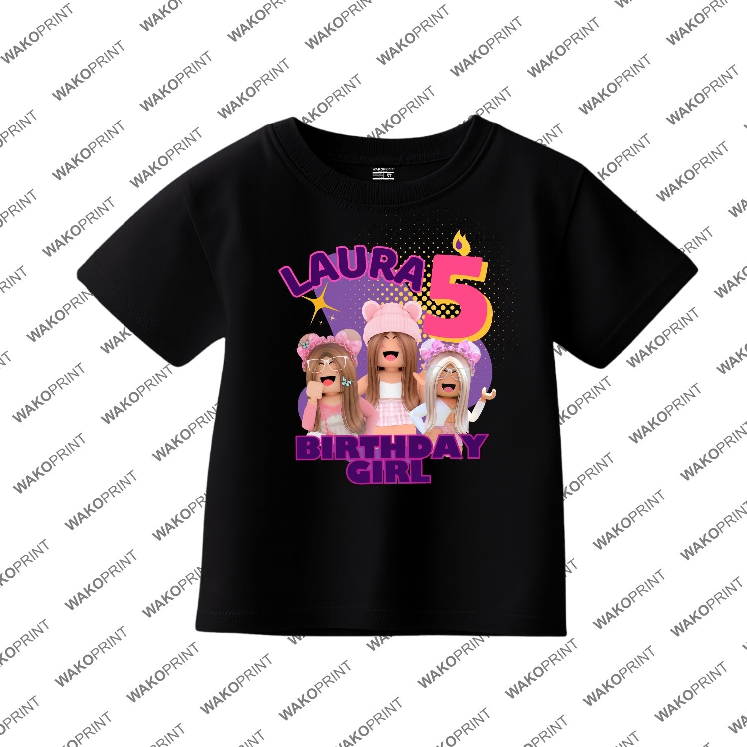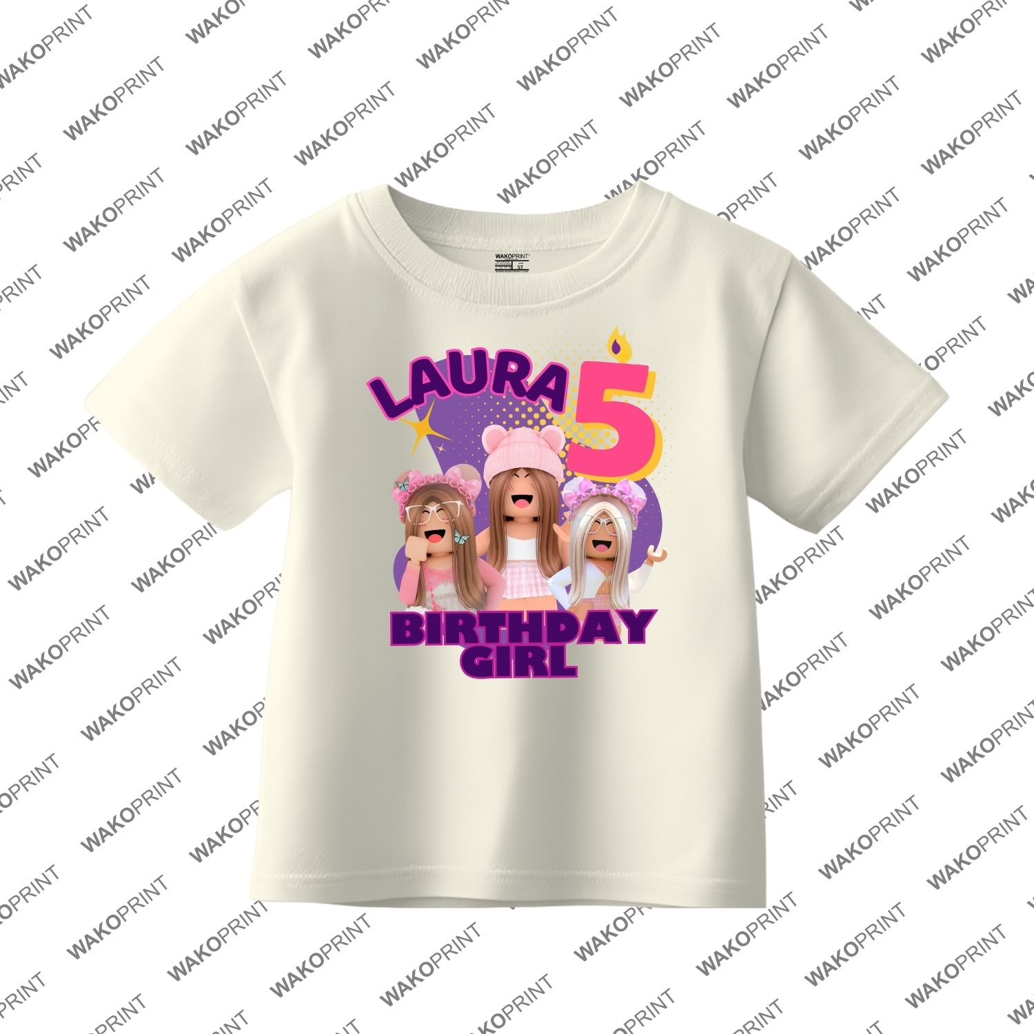 Home Kids Birthday Custom Birthday Family Matching Shirts robux Family Personalized Shirts Robux Characters T-Shirts Video Games t-Shirt, Blocks Girl Shirt Camiseta personalizada de Video Juegos White,Black