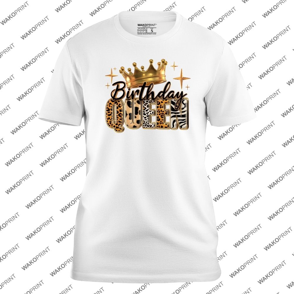 Birthday Queen T-Shirt Leopard Print Crown Sparkle Animal Print Party Tee