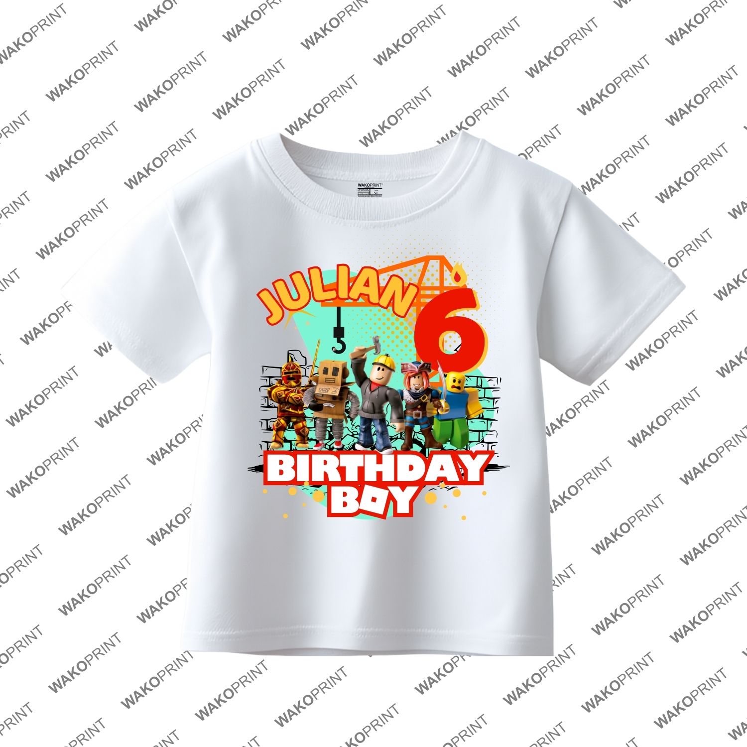 Home Kids Birthday Custom Birthday Family Matching Shirts, Family Personalized Shirts, Robux Characters T-Shirts, Video Games t-Shirt, Blocks Shirt, Camiseta personalizada de Video Juegos White