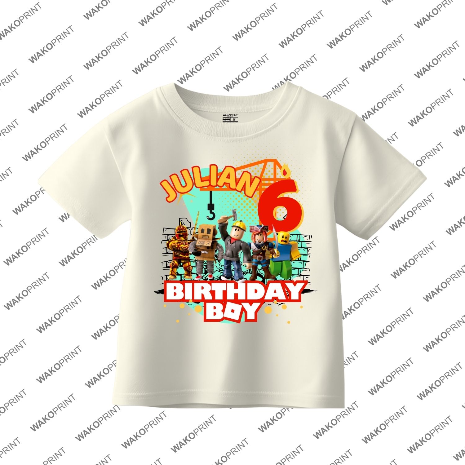 Custom Birthday Family Matching Shirts, Family Personalized Shirts, Robux Characters T-Shirts, Video Games t-Shirt, Blocks Shirt, Camiseta personalizada de Video Juegos White