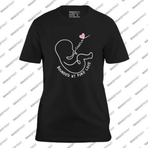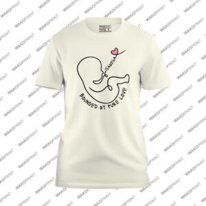 Celebrate the beauty of motherhood with this Bounded by Pure Love t-shirt, featuring a simple and heartwarming line-art design of a baby connected to a heart labeled “Mom.” Perfect for expectant mothers, baby shower gifts, or maternity photoshoots, this shirt represents the unbreakable bond between mother and child.