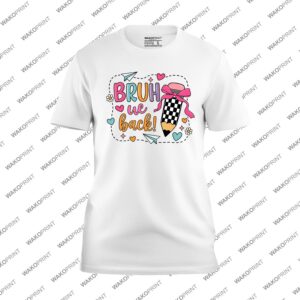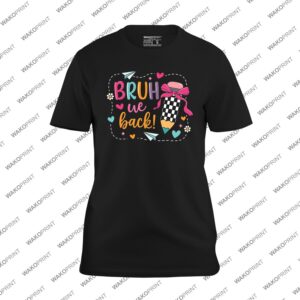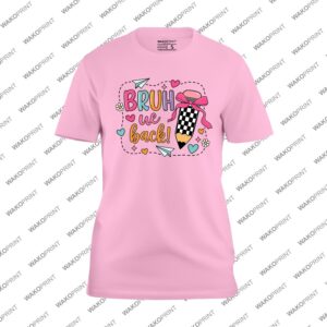 Bruh We Back T Shirt for Students | Cute Back to School Graphic Tee | Pencil Bow Paper Airplane Design | First Day Outfit