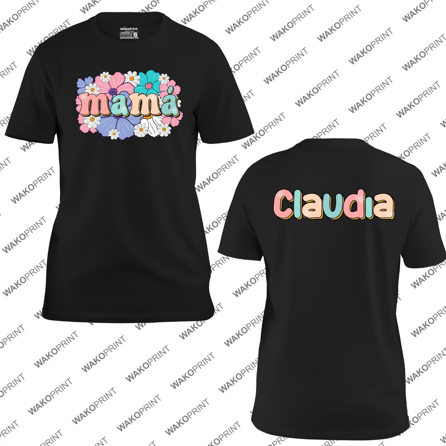 Camiseta Personalizada “Mamá” con Diseño Floral Vintage y Nombre en la Espalda – Regalo Elegante y Especial para Cualquier Ocasión