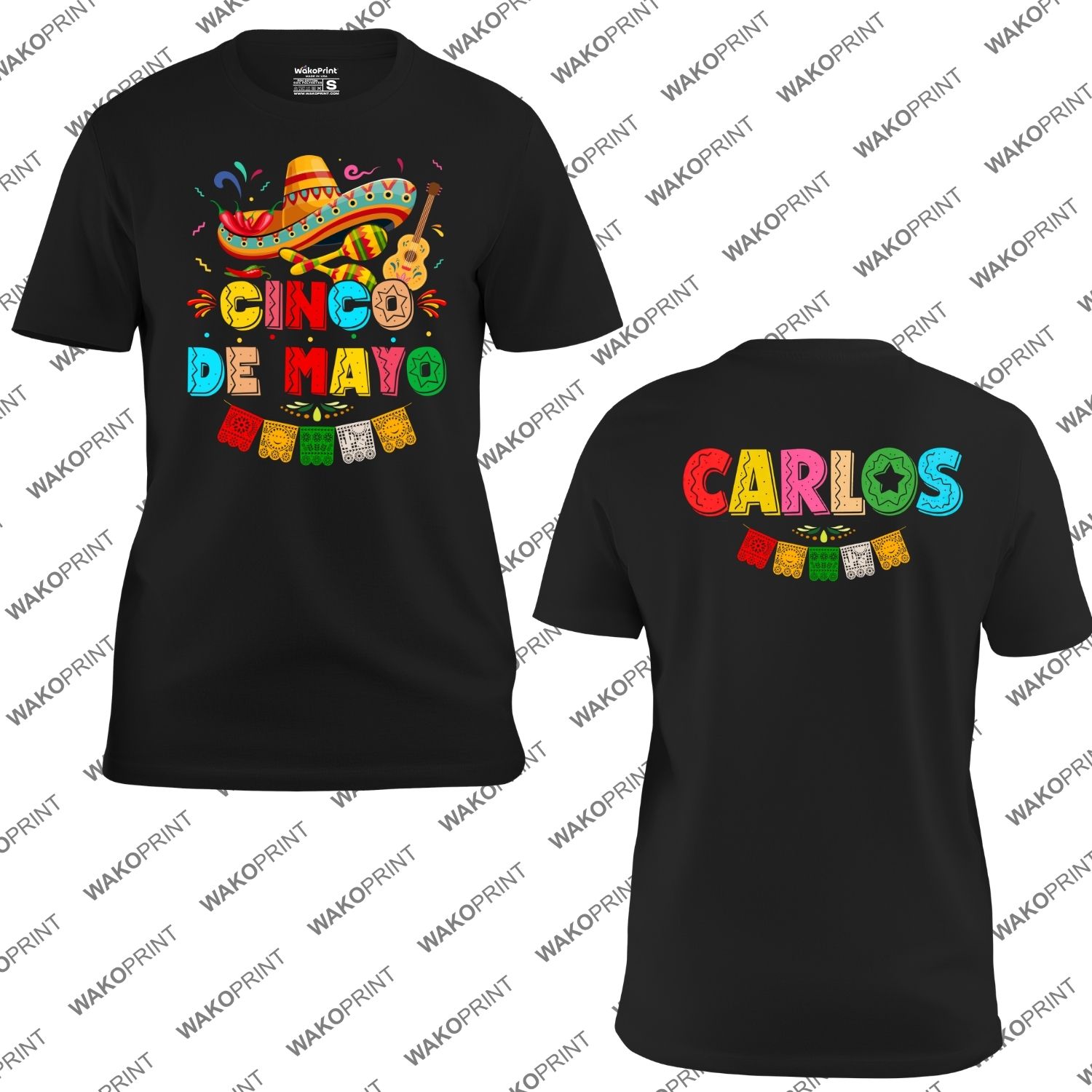 Cinco de Mayo Shirt Mexican Fiesta Sombrero Guitar Chili Pepper Graphic Tee Personalized Back Text Celebration T Shirt
