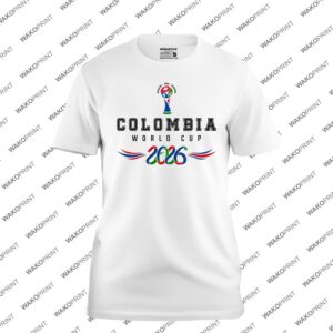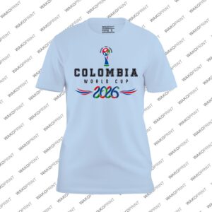 Support your team with this Colombia Copa Mundial 2026 soccer fan shirt featuring bold lettering in yellow blue and red with a championship inspired trophy graphic. Perfect for celebrating the 2026 international soccer tournament at watch parties stadium events and family gatherings.