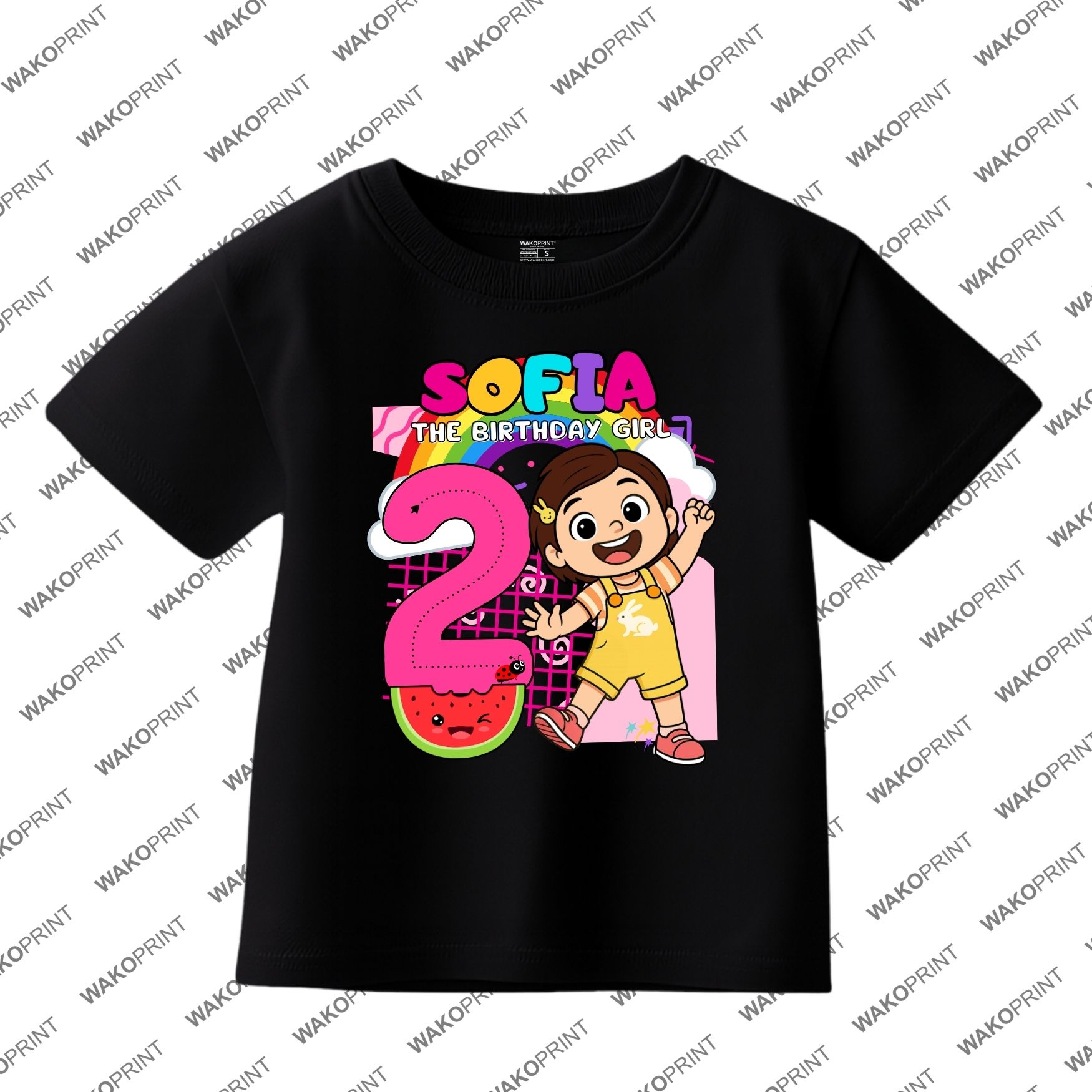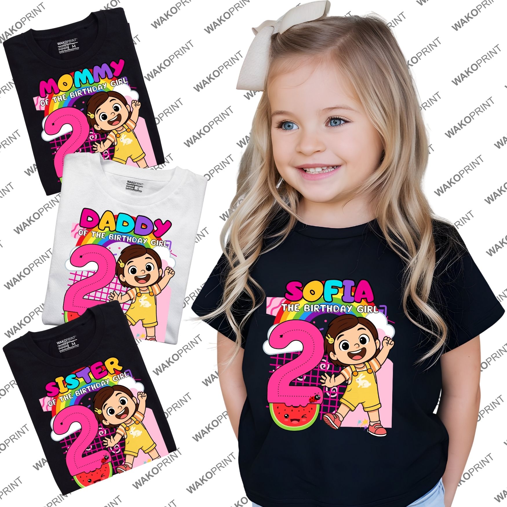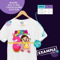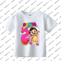 Home Holidays & Celebrations Birthday Custom Birthday Girl Shirt | Personalized Name & Age | Fun Cartoon Theme Inspired by Popular Kids Shows melon