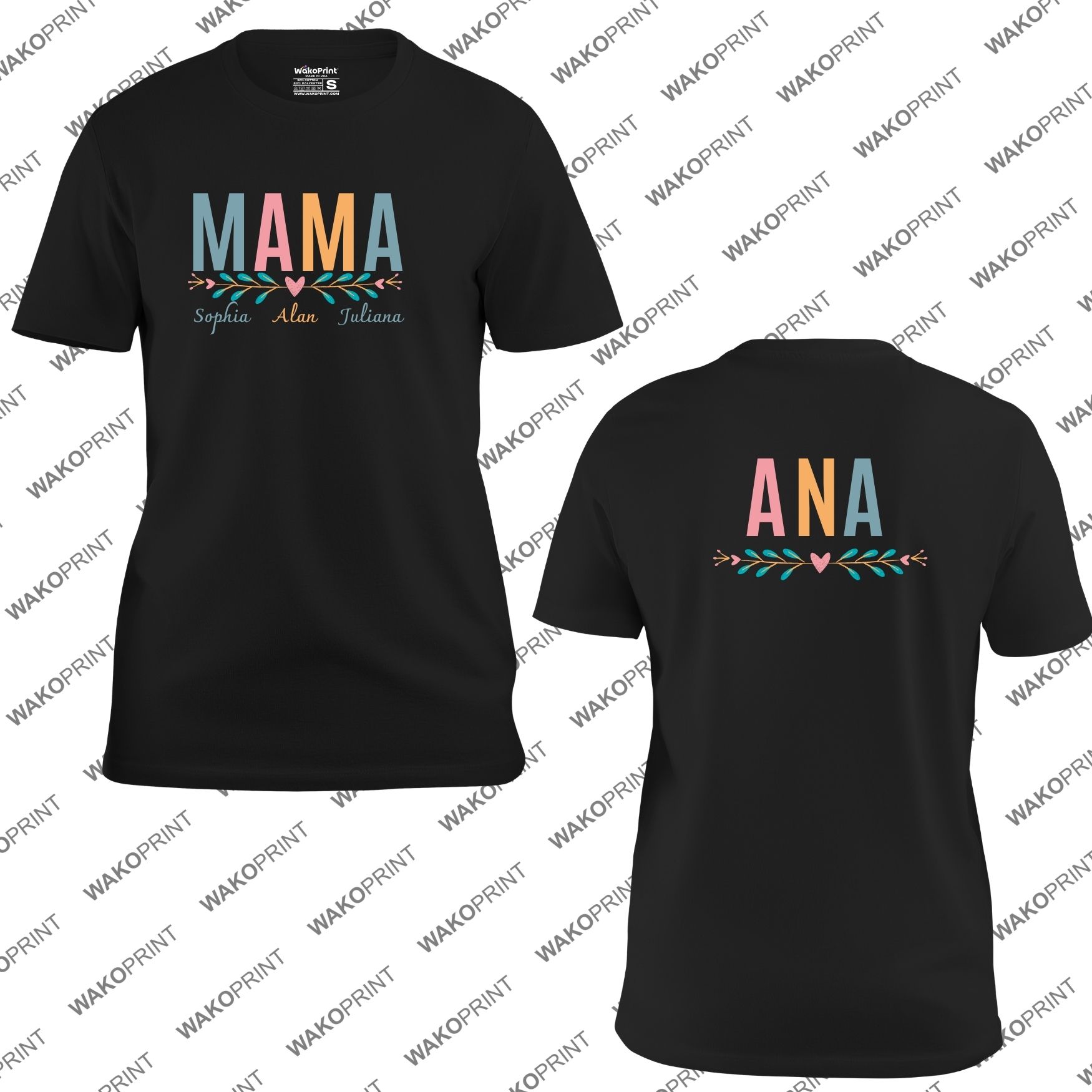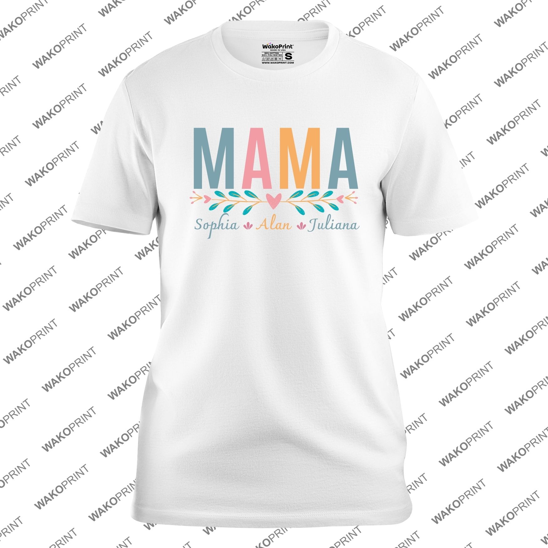 Custom Mama T-Shirt with Kids’ Names | Personalized Add Custom Text or Name on Back | Cotton Blend Graphic Tee | Black or White | Unisex Fit S–4XL