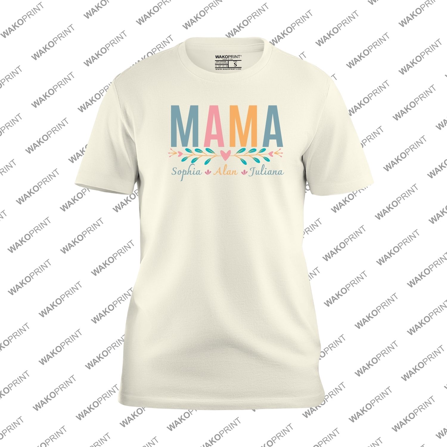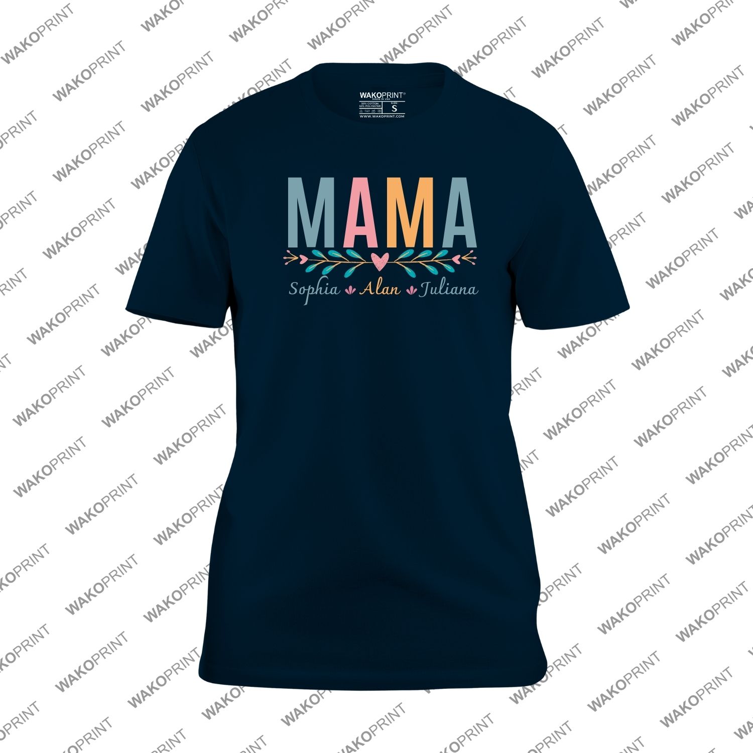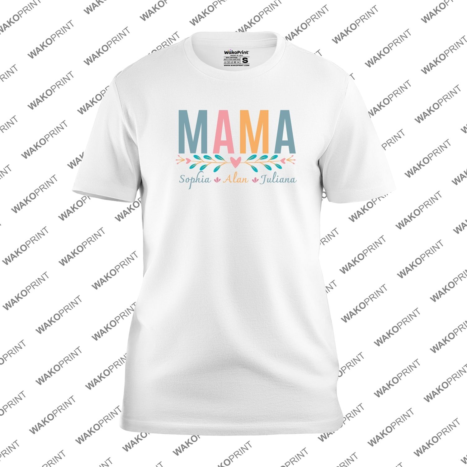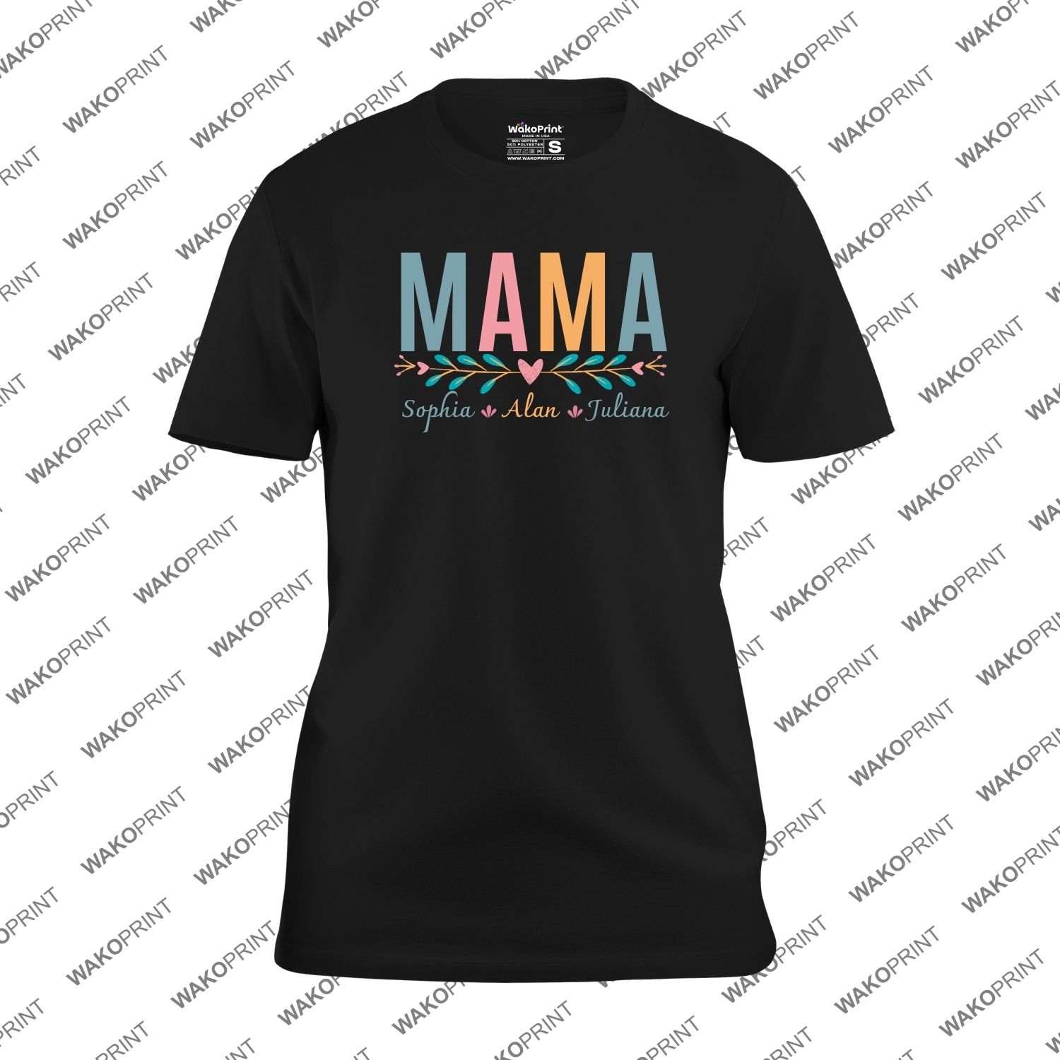 Custom Mama T-Shirt with Kids’ Names | Personalized Add Custom Text or Name on Back | Cotton Blend Graphic Tee | Black or White | Unisex Fit S–4XL