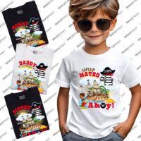 Home Holidays & Celebrations Birthday Custom Pirate Birthday Shirt | Personalized Name and Age | Captain Birthday Outfit | Personalized T-Shirt for Kids & Adults | Matching Family Shirts | Black or White | Boys, Girls & Family Party Outfit