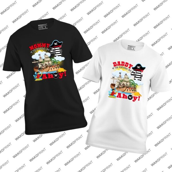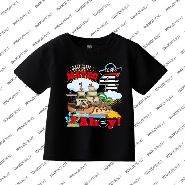 Custom Pirate Birthday Shirt | Personalized Name and Age | Captain Birthday Outfit | Personalized T-Shirt for Kids & Adults | Matching Family Shirts | Black or White | Boys, Girls & Family Party Outfit