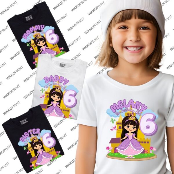 Home Holidays & Celebrations Birthday Custom Princess Birthday Shirt for Girls – Personalized Name and Age – Castle Birthday Outfit
