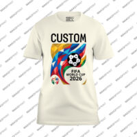 Celebrate the global soccer tournament with this Custom World Cup 26 graphic shirt featuring a colorful trophy inspired design and bold World Cup 26 lettering. The vibrant multicolor artwork represents international unity and passion for the game.