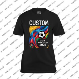 Celebrate the global soccer tournament with this Custom World Cup 26 graphic shirt featuring a colorful trophy inspired design and bold World Cup 26 lettering. The vibrant multicolor artwork represents international unity and passion for the game.