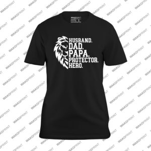 Honor the man who leads with strength and heart with this Husband Dad Papa Protector Hero T-Shirt. Featuring a bold lion design, this shirt symbolizes courage, protection, and the powerful love of a father and husband. Make it even more special by adding his name or nickname on the back, creating a personalized gift he’ll wear with pride. Perfect for Father’s Day, birthdays, anniversaries, or as a thoughtful surprise for any occasion. Crafted from a premium cotton blend, this tee offers a soft, comfortable fit that lasts. Available in black or white, and sizes S–4XL, it’s designed to look great and feel even better. A gift that reminds him every day — he truly is a husband, dad, protector, and hero.