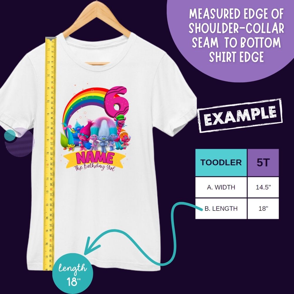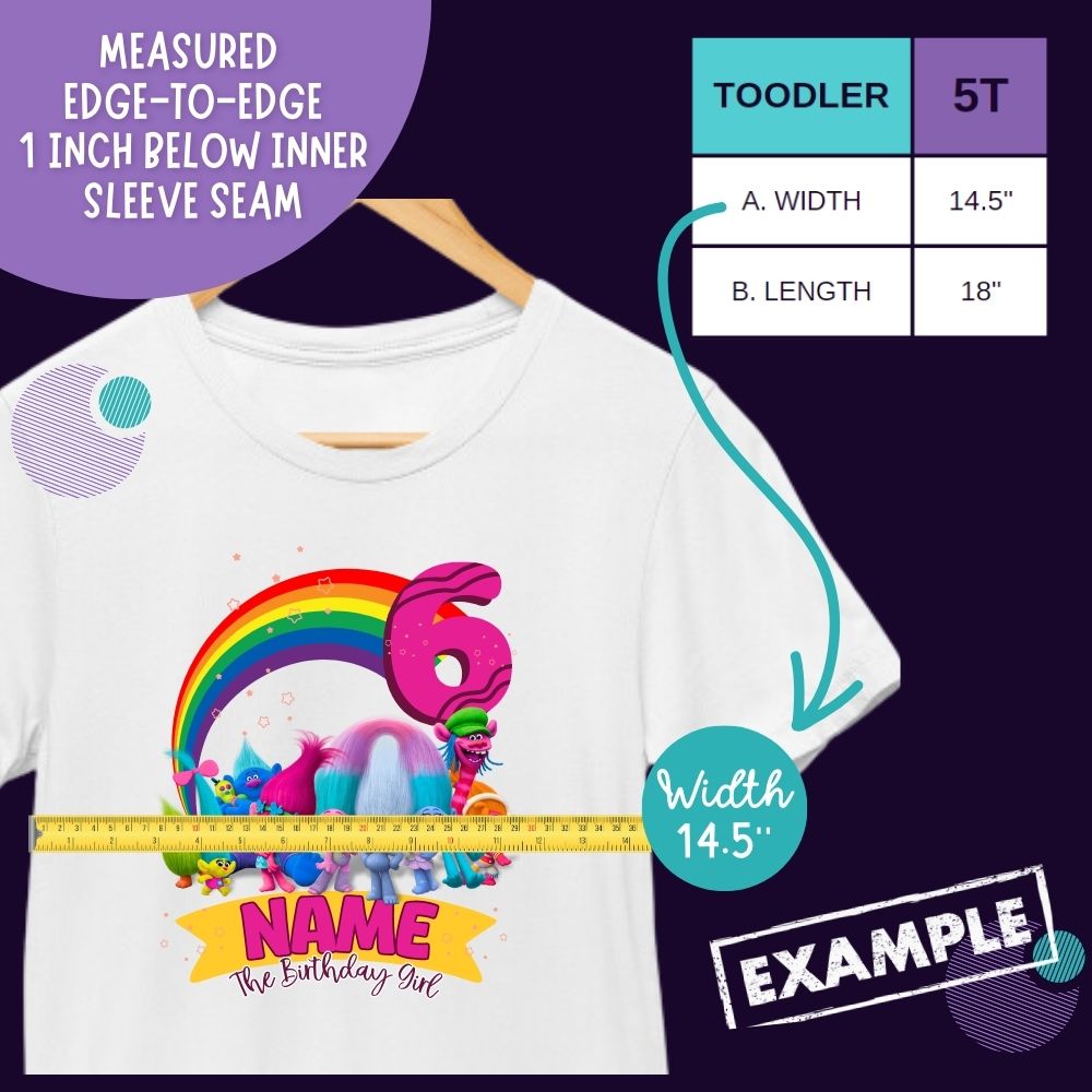 Personalized Birthday T-Shirts for Kids and Family | Custom Name and Age Shirts | Colorful Party Outfit with Fantasy Hair Characters | Fun Rainbow Theme Birthday Supplies and Decorations