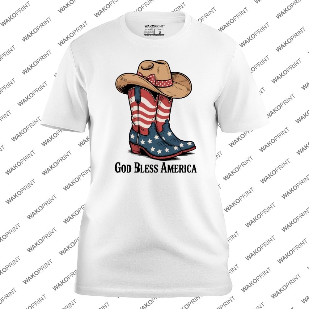 God Bless America T-Shirt – Patriotic Cowboy Boots and Hat Graphic Tee, Western 4th of July Shirt