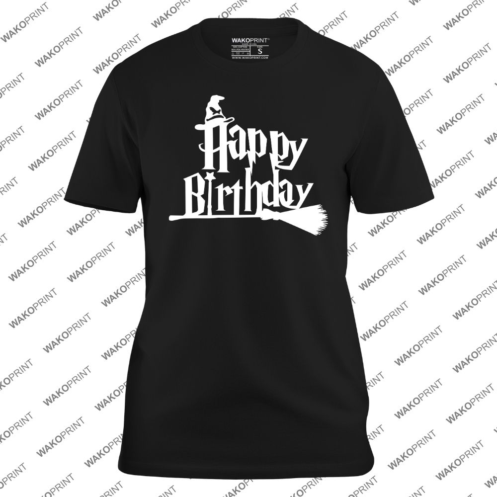 Happy Birthday T-Shirt Witch Hat Broom Magic Wizard Theme Party Tee