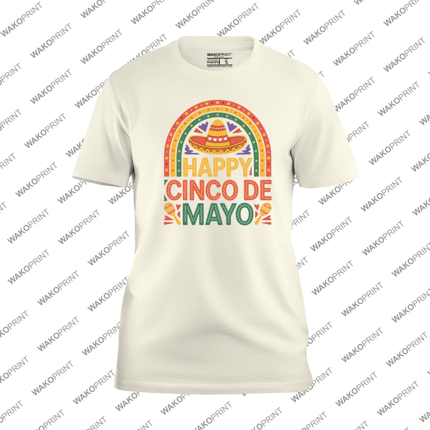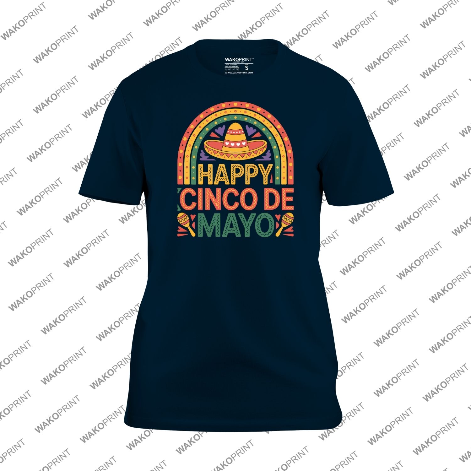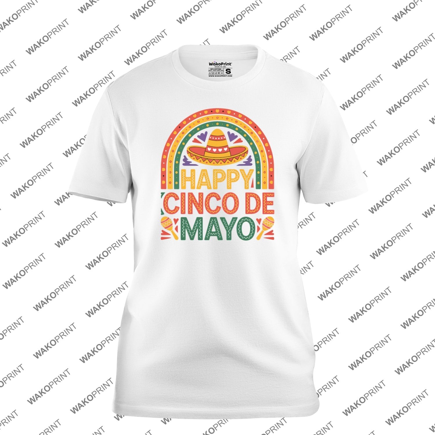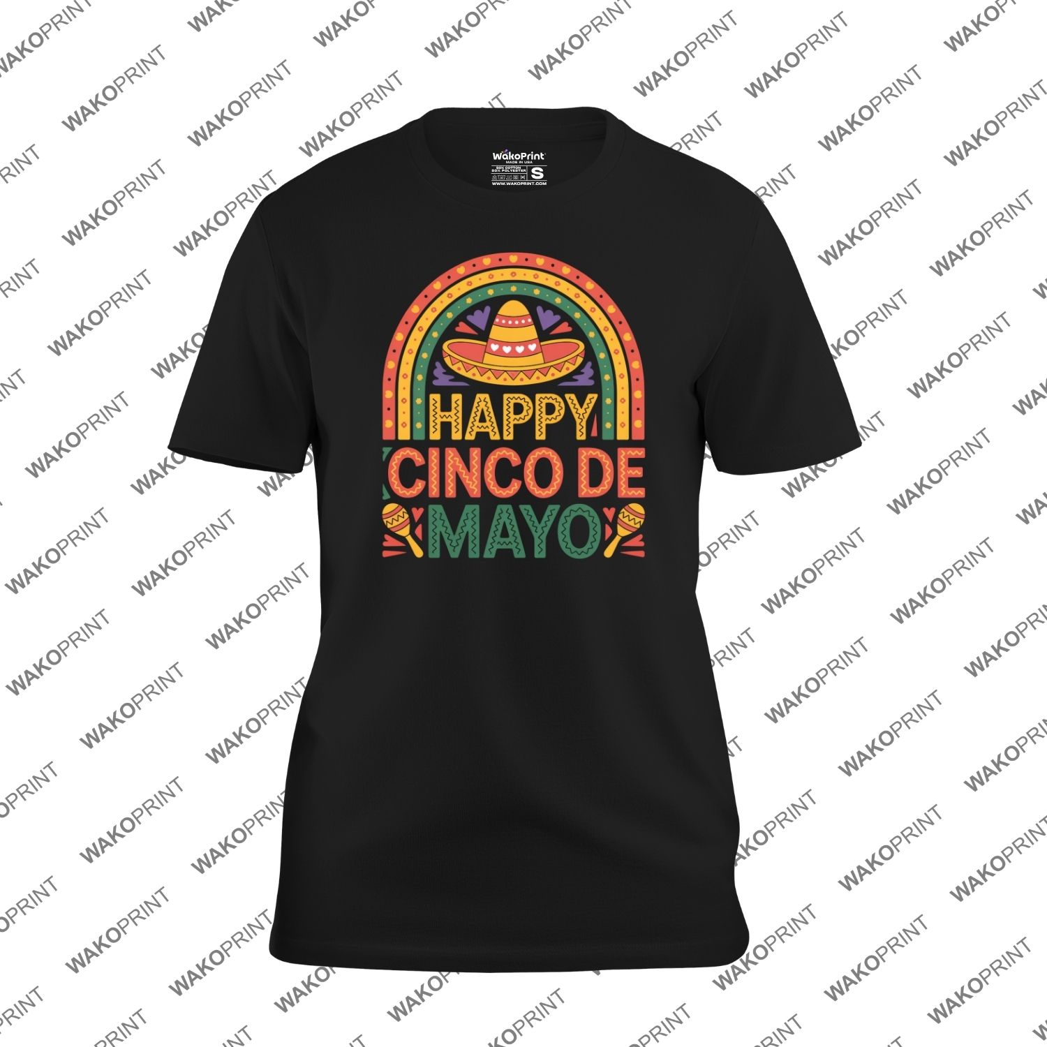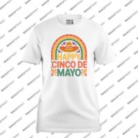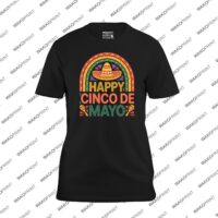 Celebrate in colorful style with this Happy Cinco de Mayo graphic shirt featuring a vibrant rainbow arch design, festive sombrero illustration and bold decorative lettering. Perfect for fiesta parties parades cultural events and family gatherings.