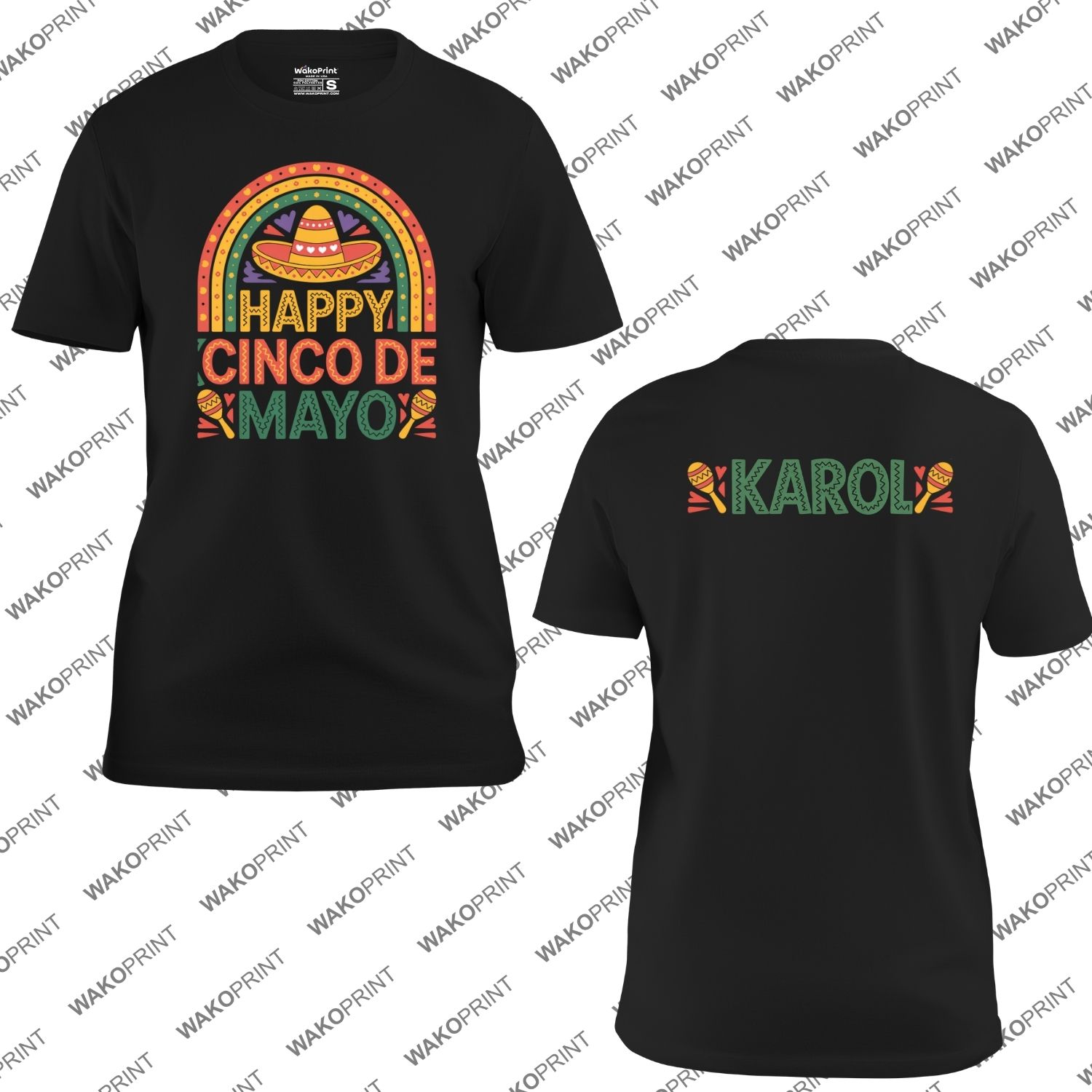 Happy Cinco de Mayo Shirt Mexican Fiesta Rainbow Sombrero Graphic Tee Personalized Back Text Celebration T Shirt