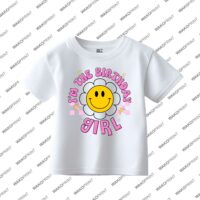 Celebrate in style with our cheerful Happy Face Birthday Shirt! This bright and colorful tee features a playful happy face design, perfect for girls who love fun, lively styles. It’s designed for comfort, with soft cotton for toddlers and a cotton/poly blend for older kids and adults, making it ideal for a full day of birthday fun. Available in sizes from 6M to Adult 4XL, this shirt is great for matching family looks — including options for siblings and parents to join the birthday fun. It’s the perfect choice for a birthday party, a thoughtful gift, or a fun photoshoot to remember. Order now and let the birthday girl shine with joy on her special day!