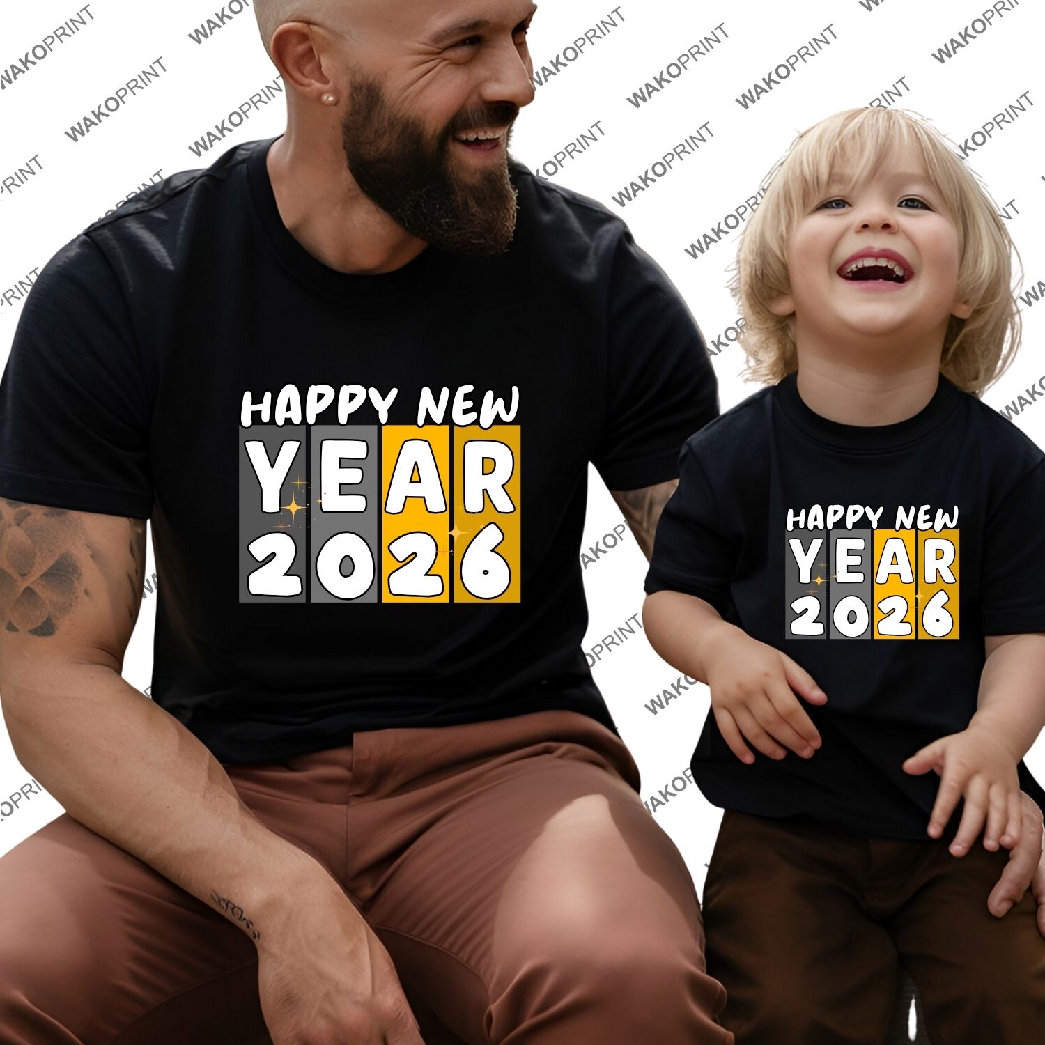 Happy New Year 2026 T-Shirt – Family Matching Shirts | Black Festive New Year’s Eve Celebration Tee for Men, Women & Kids