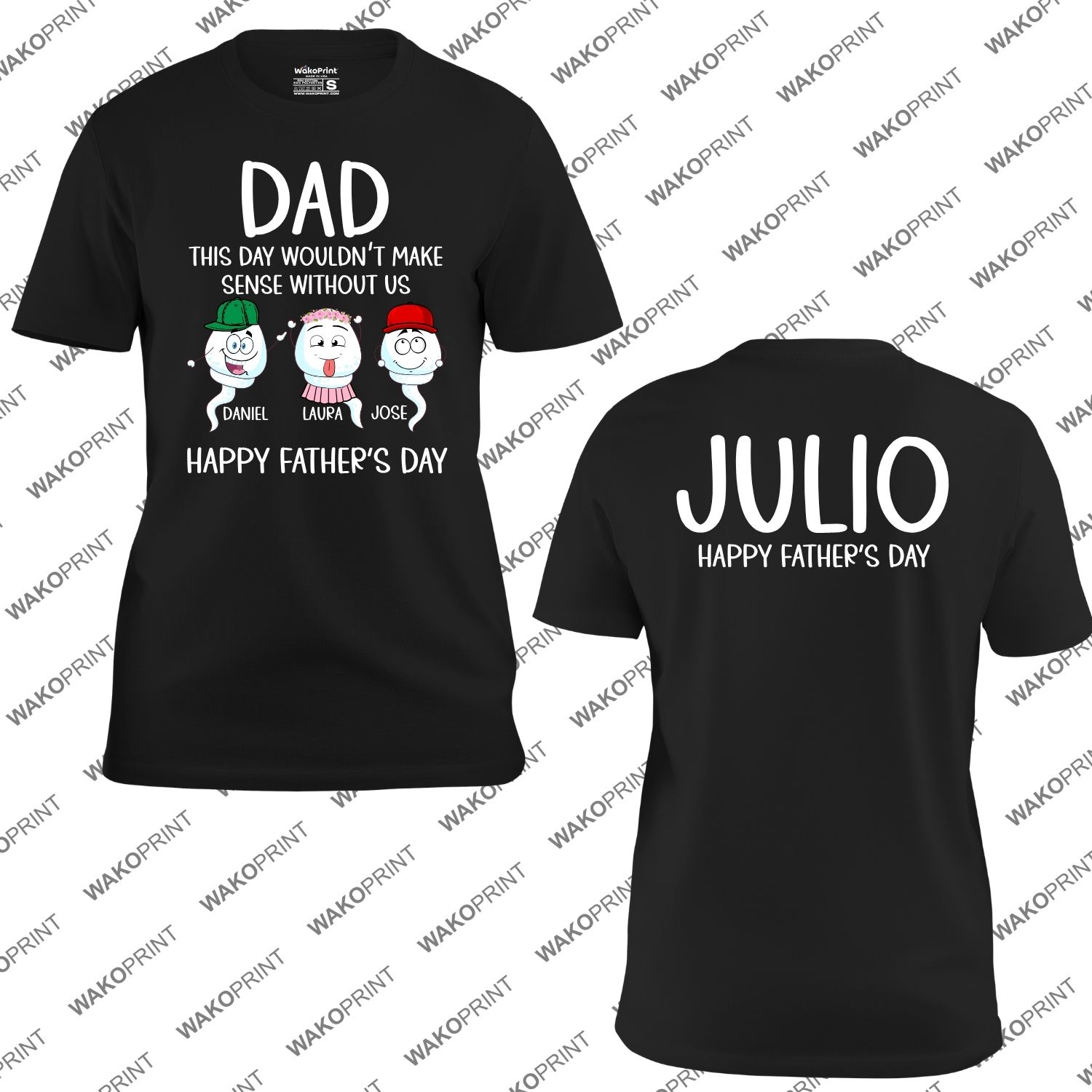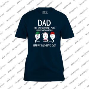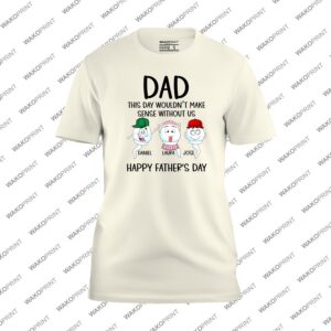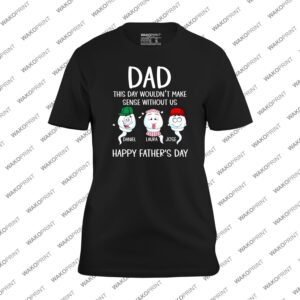 Make Father’s Day unforgettable with this “Dad, This Day Wouldn’t Make Sense Without Us” Personalized T-Shirt — a heartfelt and fun way to show Dad just how much he means to his family. Each shirt is customizable with kids’ names under the cartoon characters, making it a one-of-a-kind keepsake he’ll cherish forever. You can also add Dad’s name or nickname on the back for an extra personal touch that turns this tee into a true family treasure. Made from a premium cotton blend, this shirt offers comfort, breathability, and durability, ideal for daily wear or special family celebrations. Available in black or white, and sizes S–4XL, it’s the perfect mix of fun and emotion — just like Father’s Day should be.