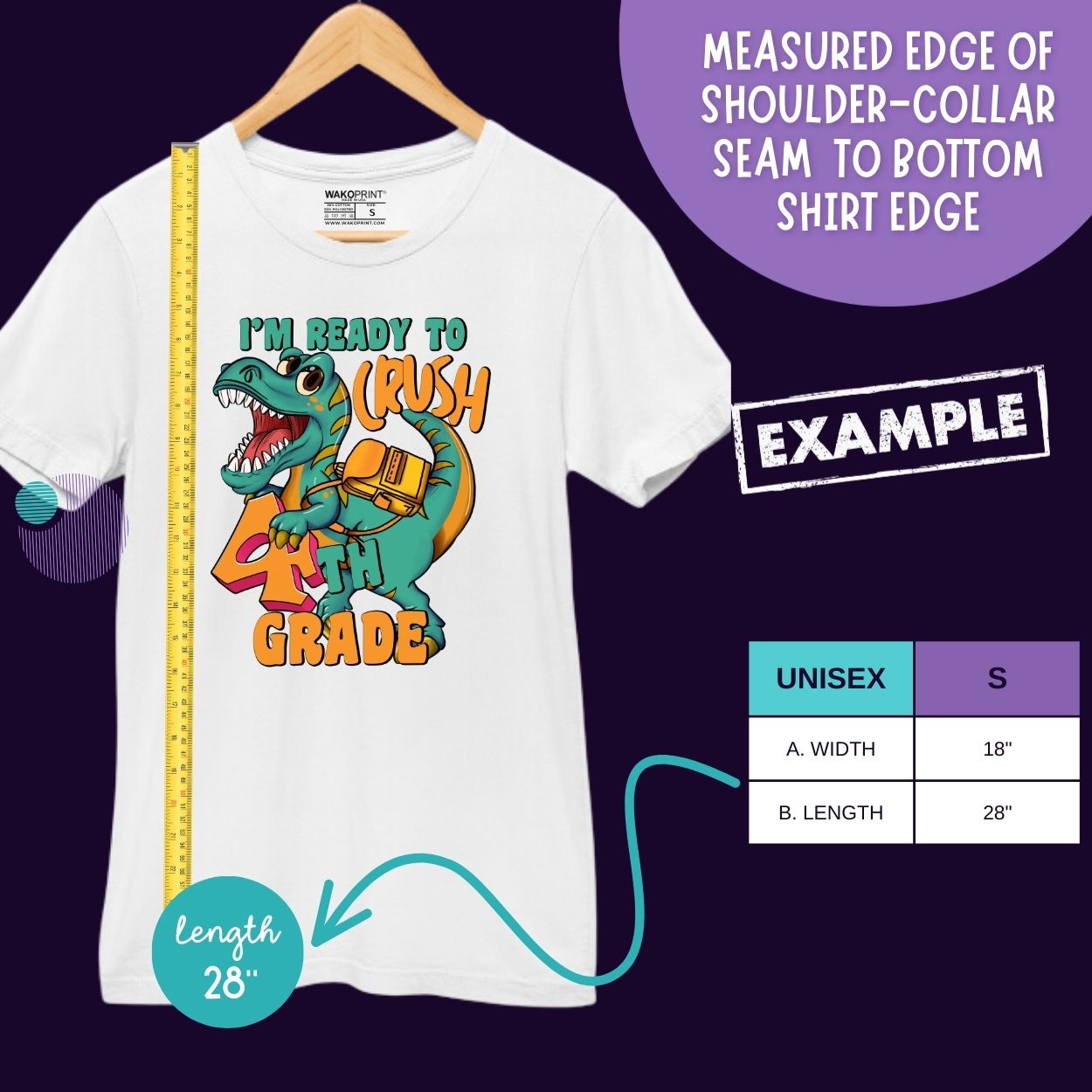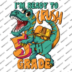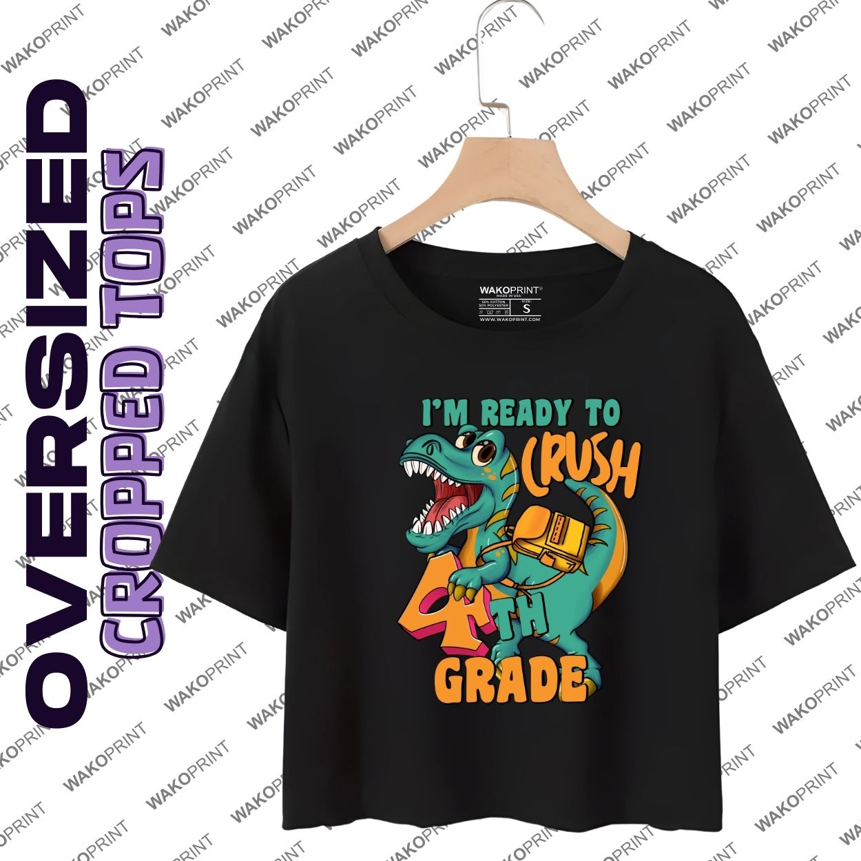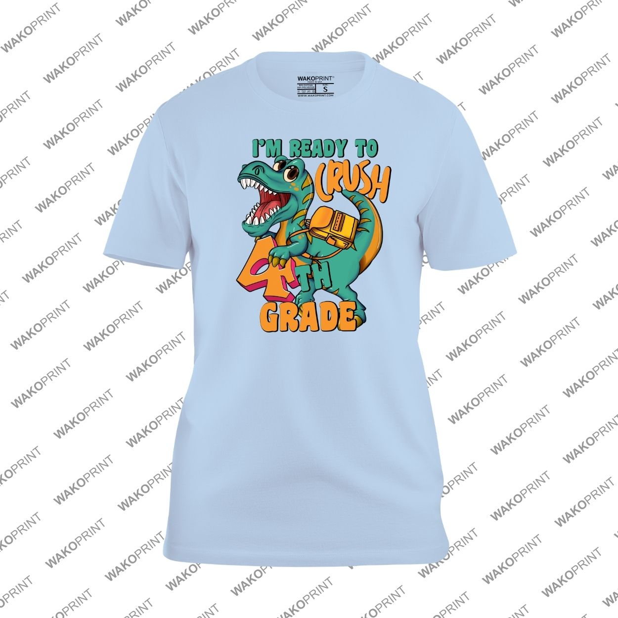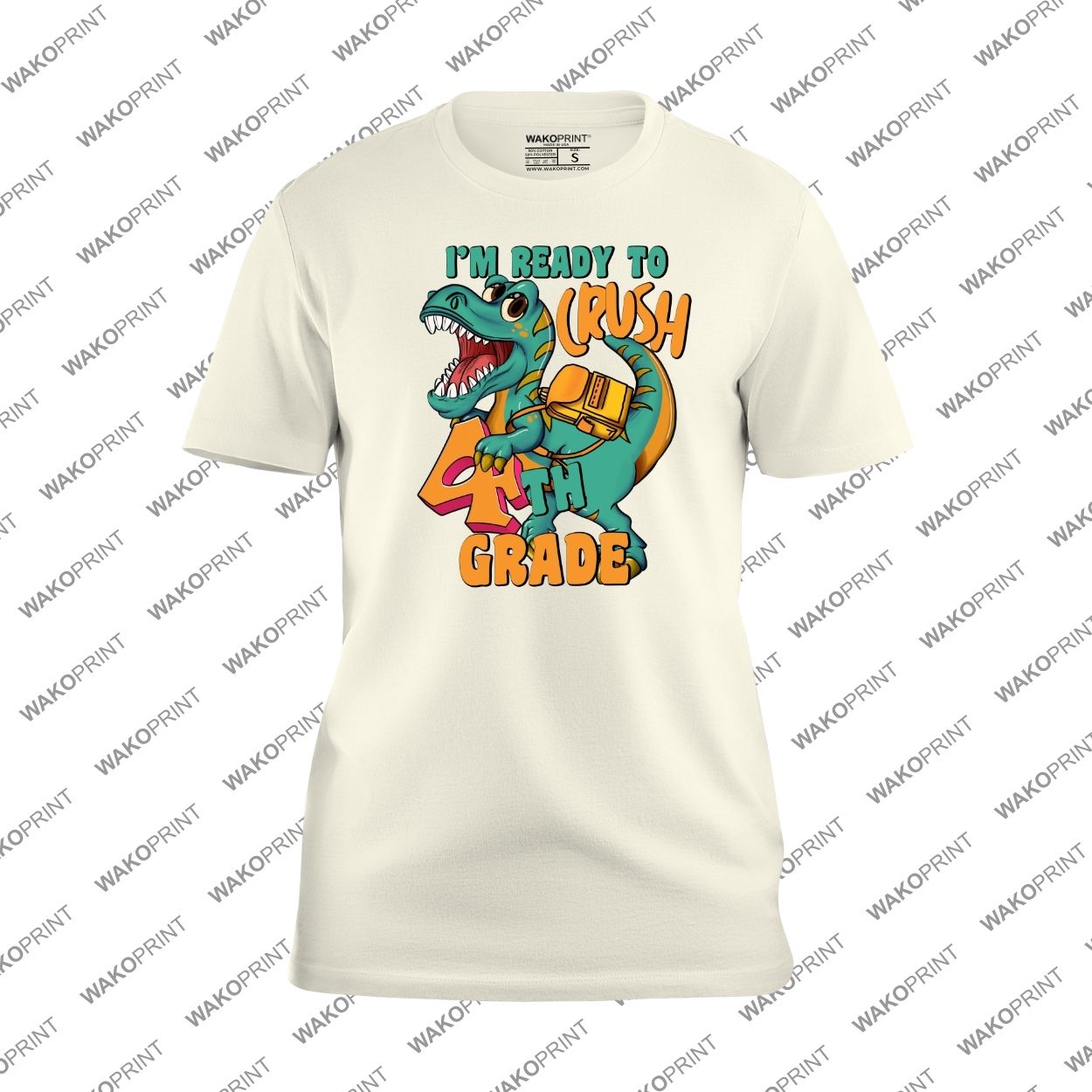 I’m Ready to Crush 4th Grade T-Shirt | Funny Dinosaur Back to School Shirt | Boys and Girls Student Tee | Custom Text Option | Sizes 6M–4XL | Multiple Colors