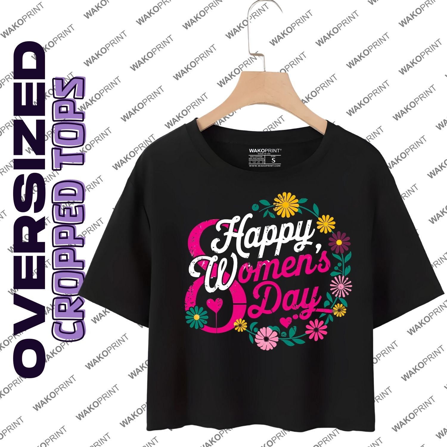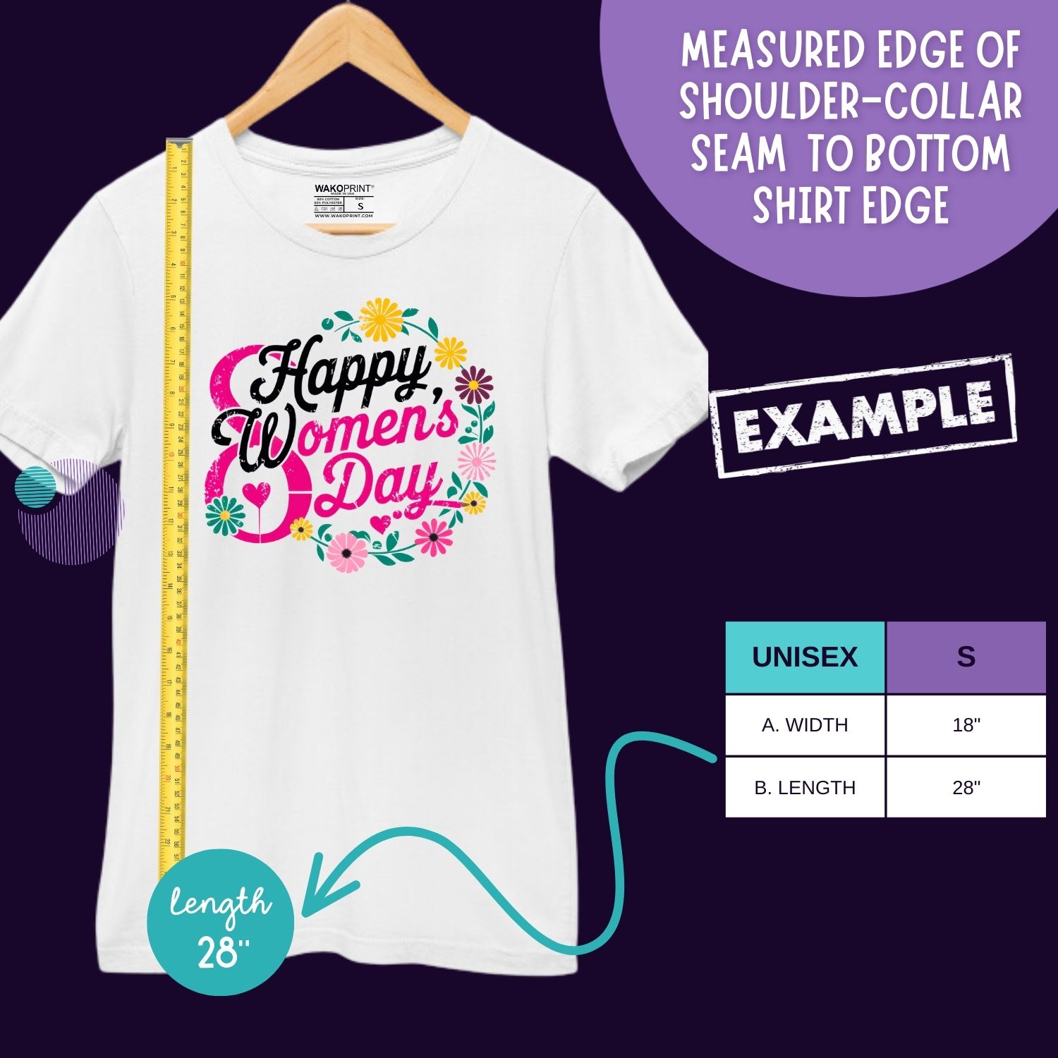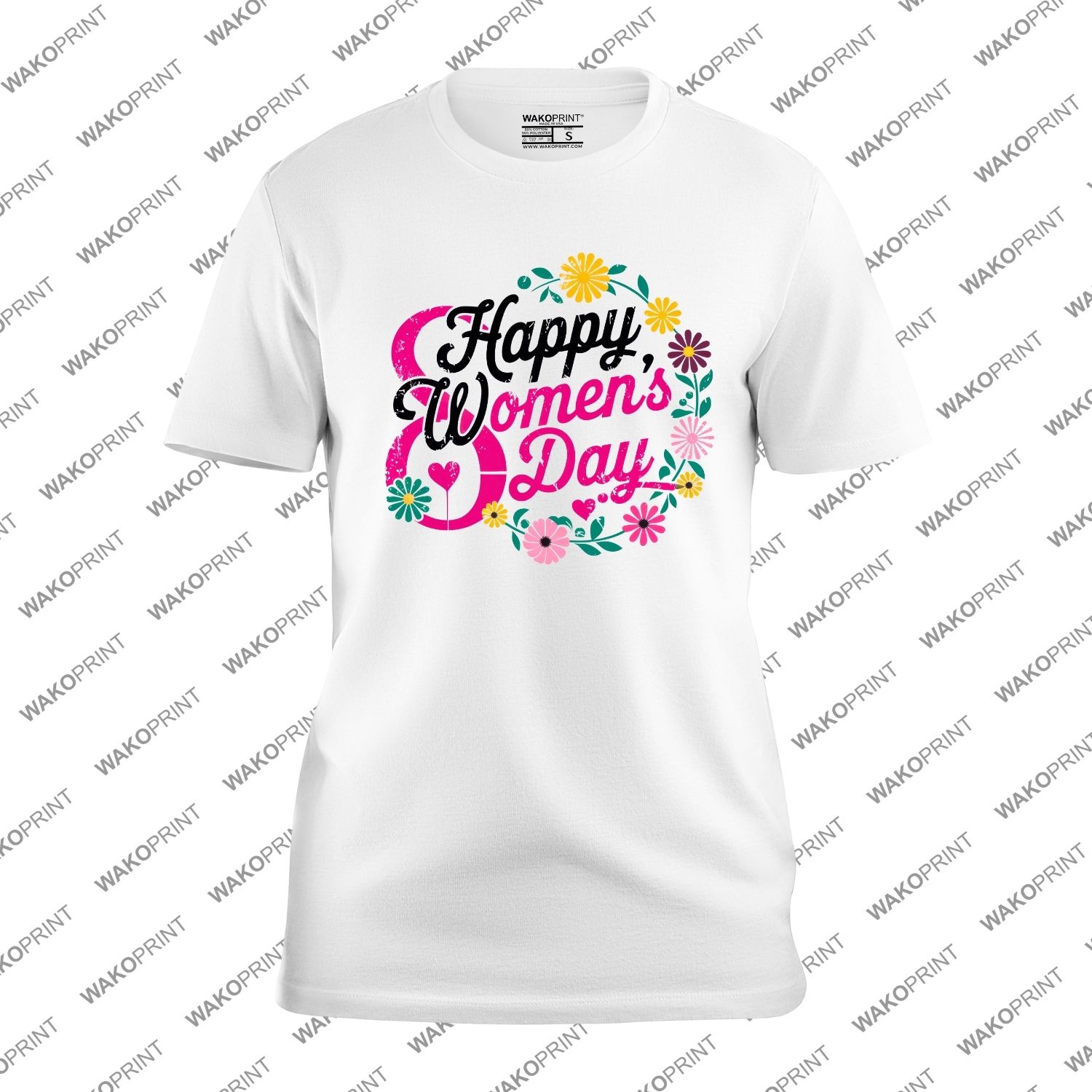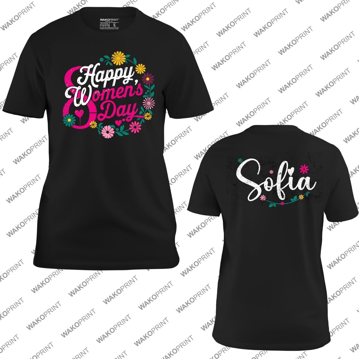 Happy Women’s Day T-Shirt | Floral Graphic Tee for Women | Empowerment and Celebration Shirt | Custom Text Option | Sizes 6M–4XL | Multiple Colors