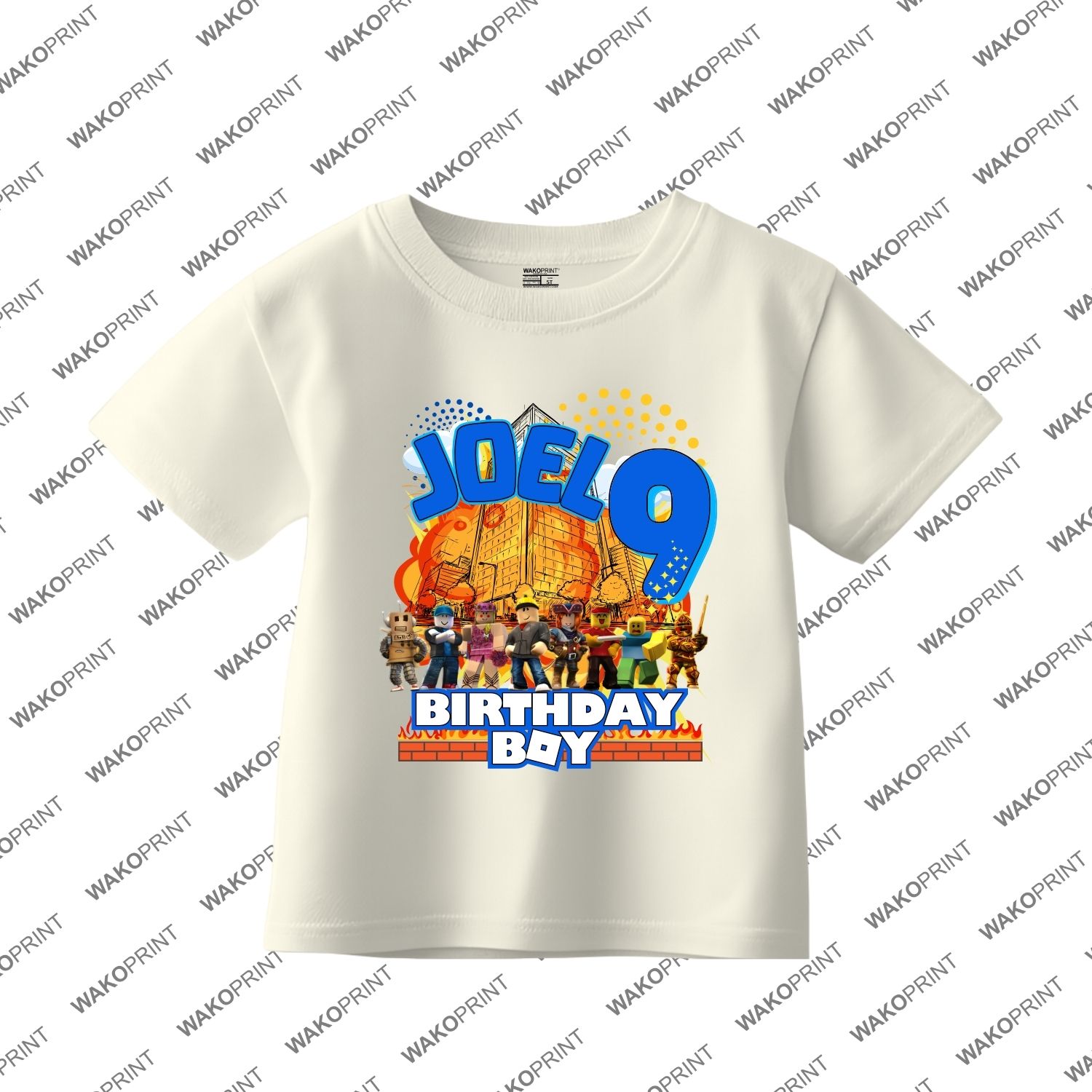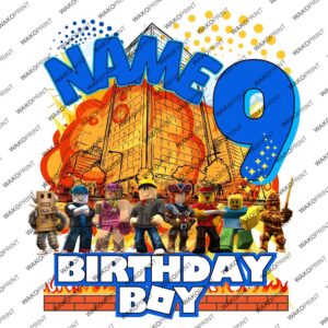 Custom Birthday Family Matching Shirts, Family Personalized Shirts, Robux Characters T-Shirts, Video Games t-Shirt, Blocks Shirt, Camiseta personalizada de Video Juegos White