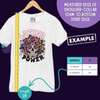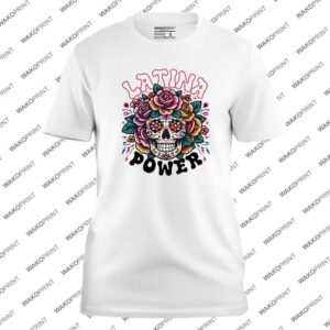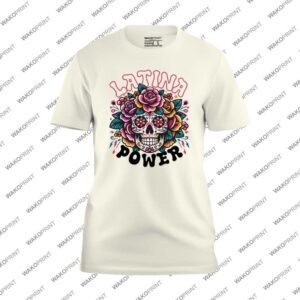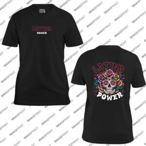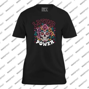 Unique designs inspired by Latina identity, vibrant and high-quality prints, soft and comfortable fabric available in unisex and fitted styles—perfect for gifting (or treating yourself, because you deserve it 😉).