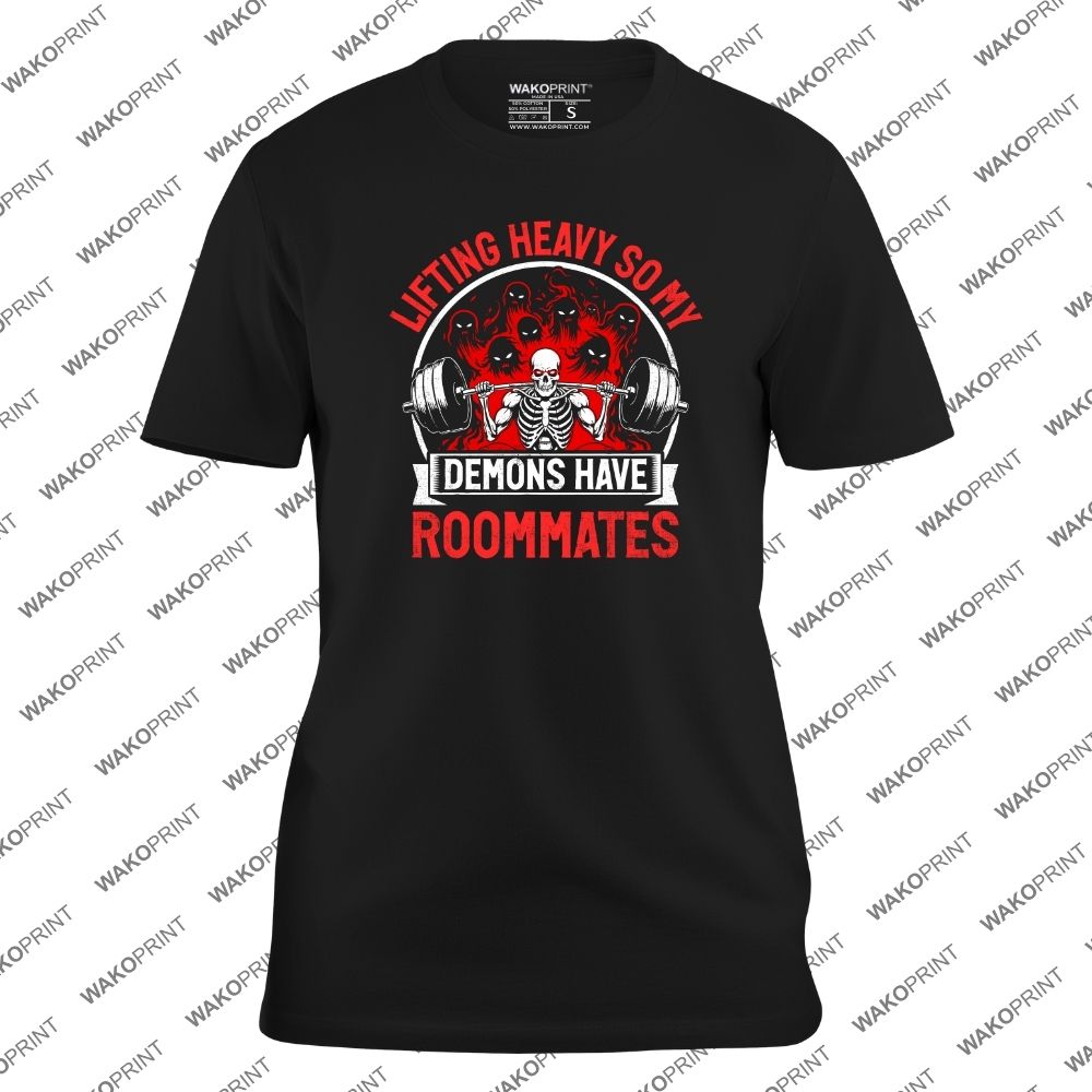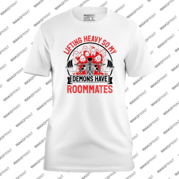 Lifting Heavy So My Demons Have Roommates T-Shirt – Funny Gym Fitness Weightlifting Tee