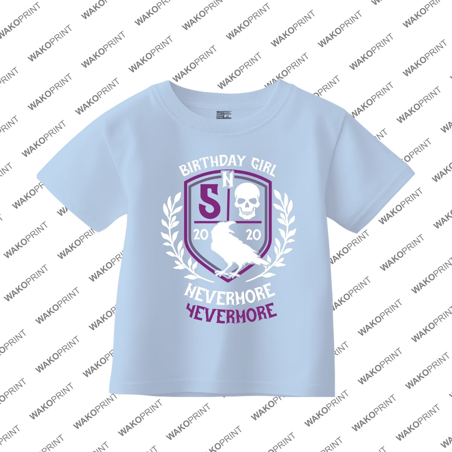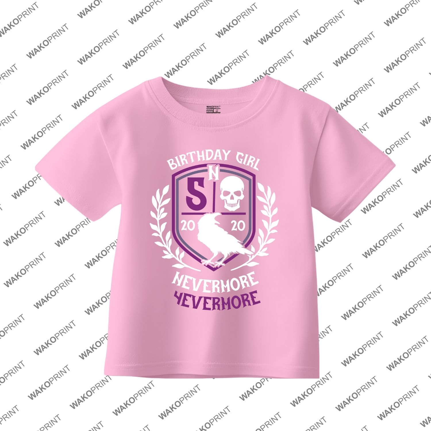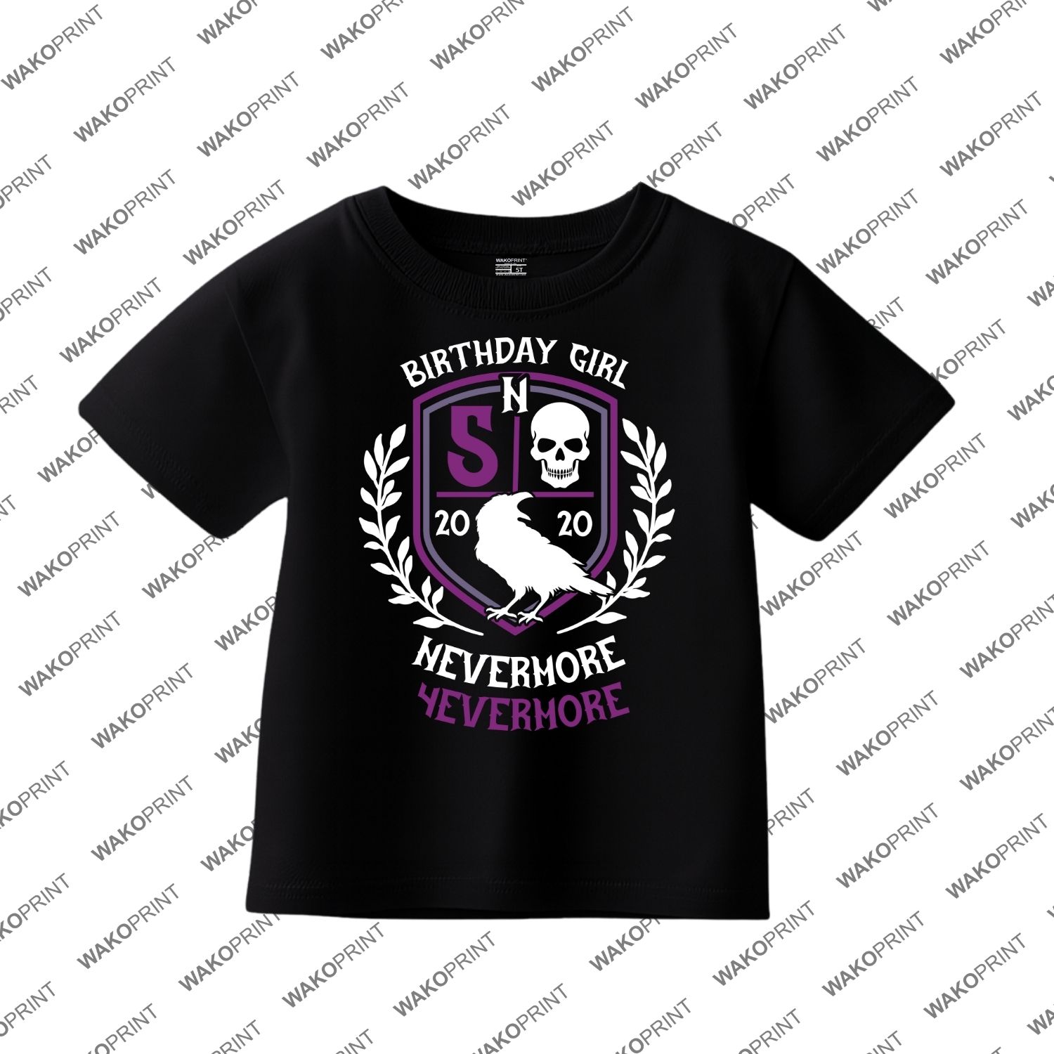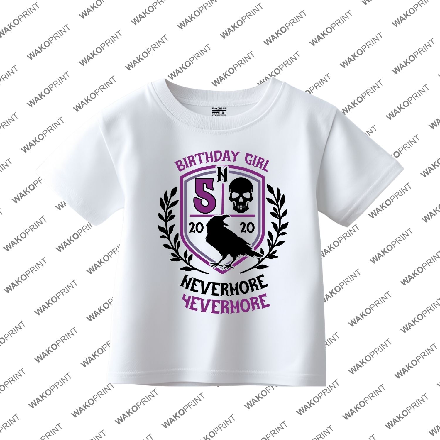 Merlina Nevermore Birthday T-Shirt – Personalized Party Tee with Name & Age, Wednesday Theme, Birthday Girl Outfit White
