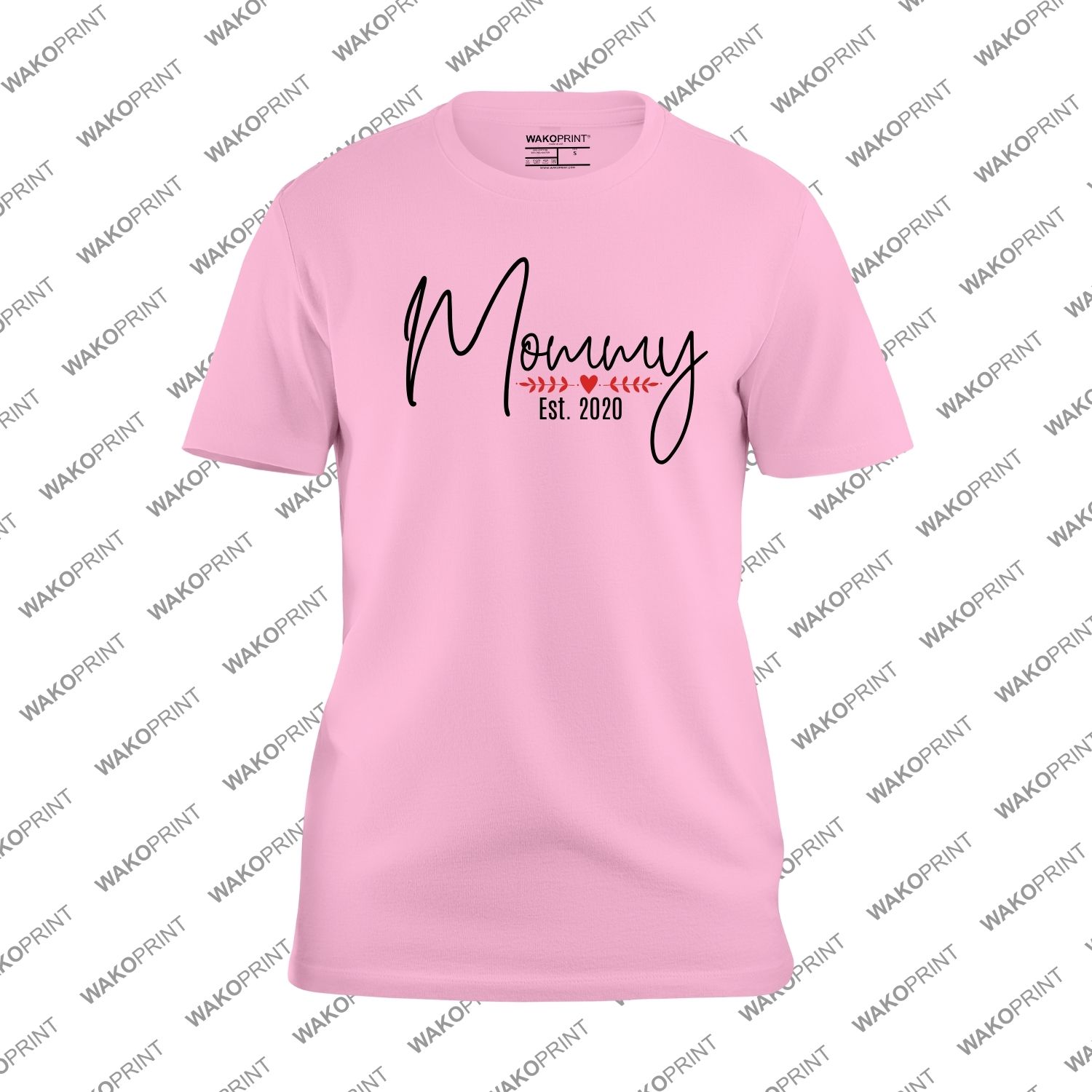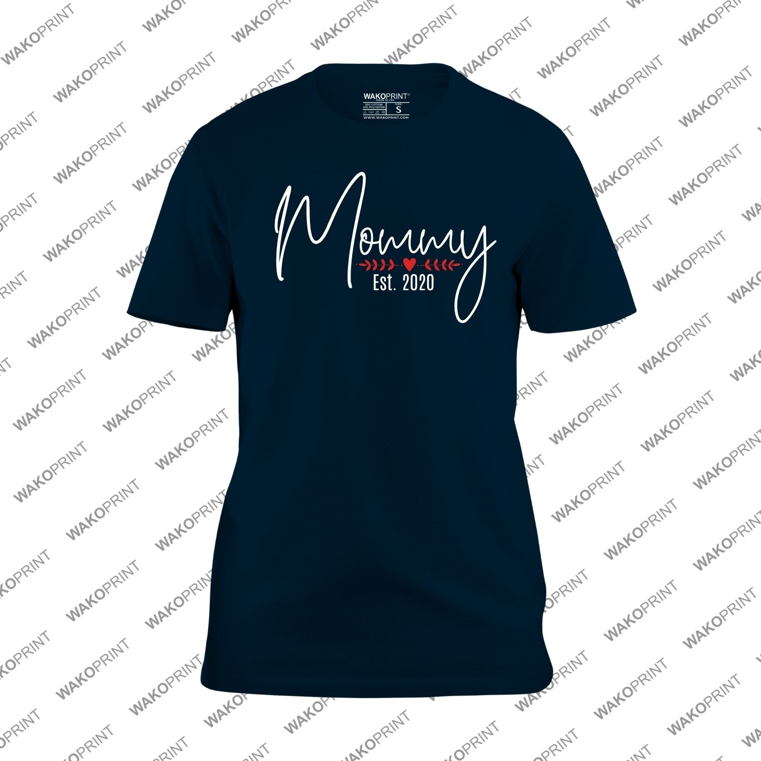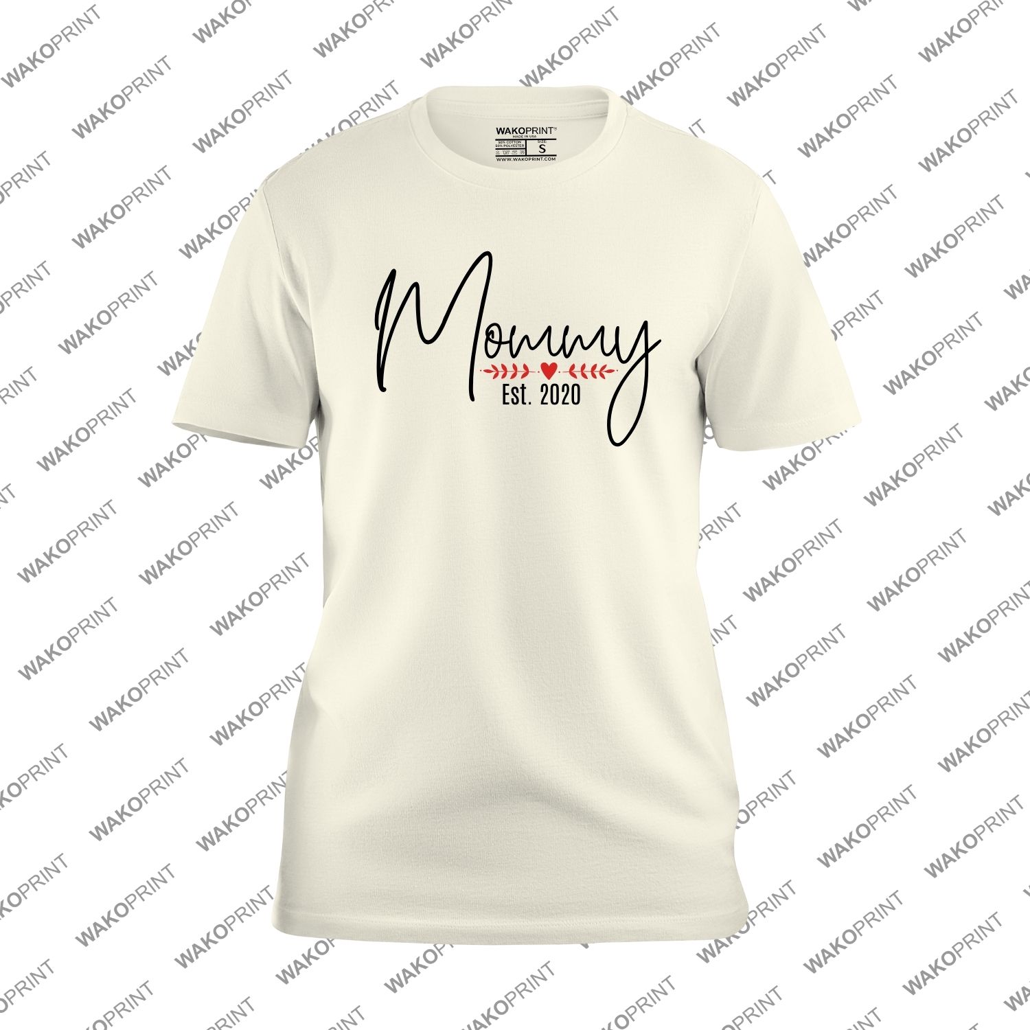 Mommy Est. [Custom Year] T-Shirt | Personalized Custom Name on Back | Cotton Blend Graphic Tee | Black or White | Unisex Fit S–4XL for Moms