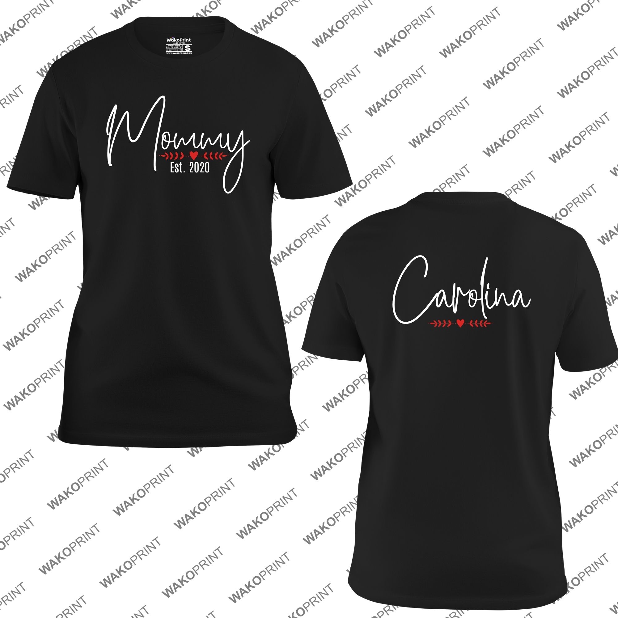 Home Holidays & Celebrations Mother's Day Mommy Est. [Custom Year] T-Shirt | Personalized Mother’s Day Gift | Custom Name on Back | Cotton Blend Graphic Tee | Black or White | Unisex Fit S–4XL | Perfect Gift for Moms