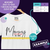 Mommy Est. [Custom Year] T-Shirt | Personalized Mother’s Day Gift | Custom Name on Back | Cotton Blend Graphic Tee | Black or White | Unisex Fit S–4XL | Perfect Gift for Moms