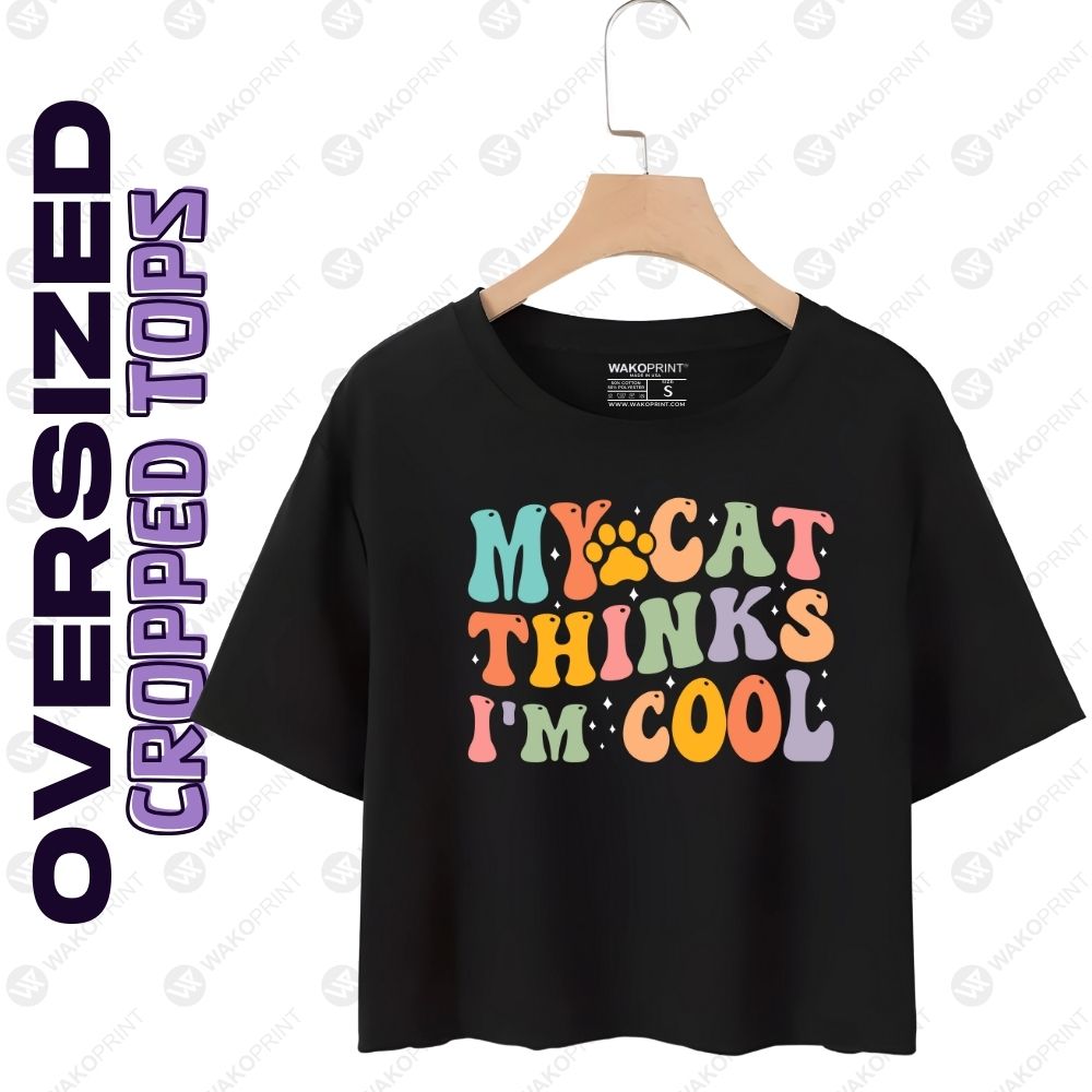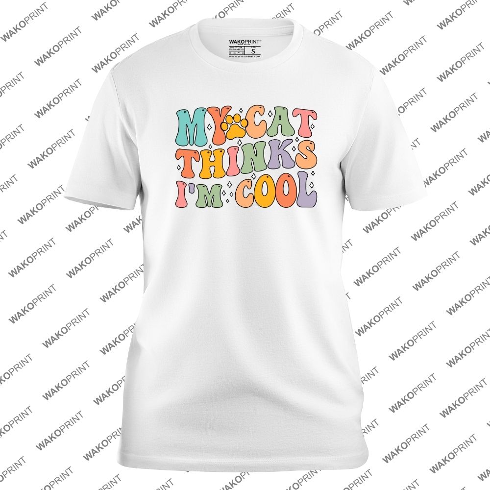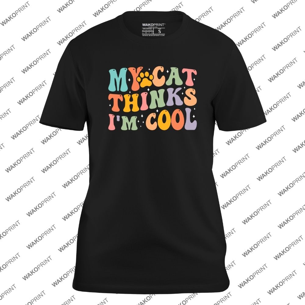My Cat Thinks I’m Cool T-Shirt – Retro Colorful Funny Cat Lover Shirt, Cute Groovy Kitty Graphic Tee for Women & Men