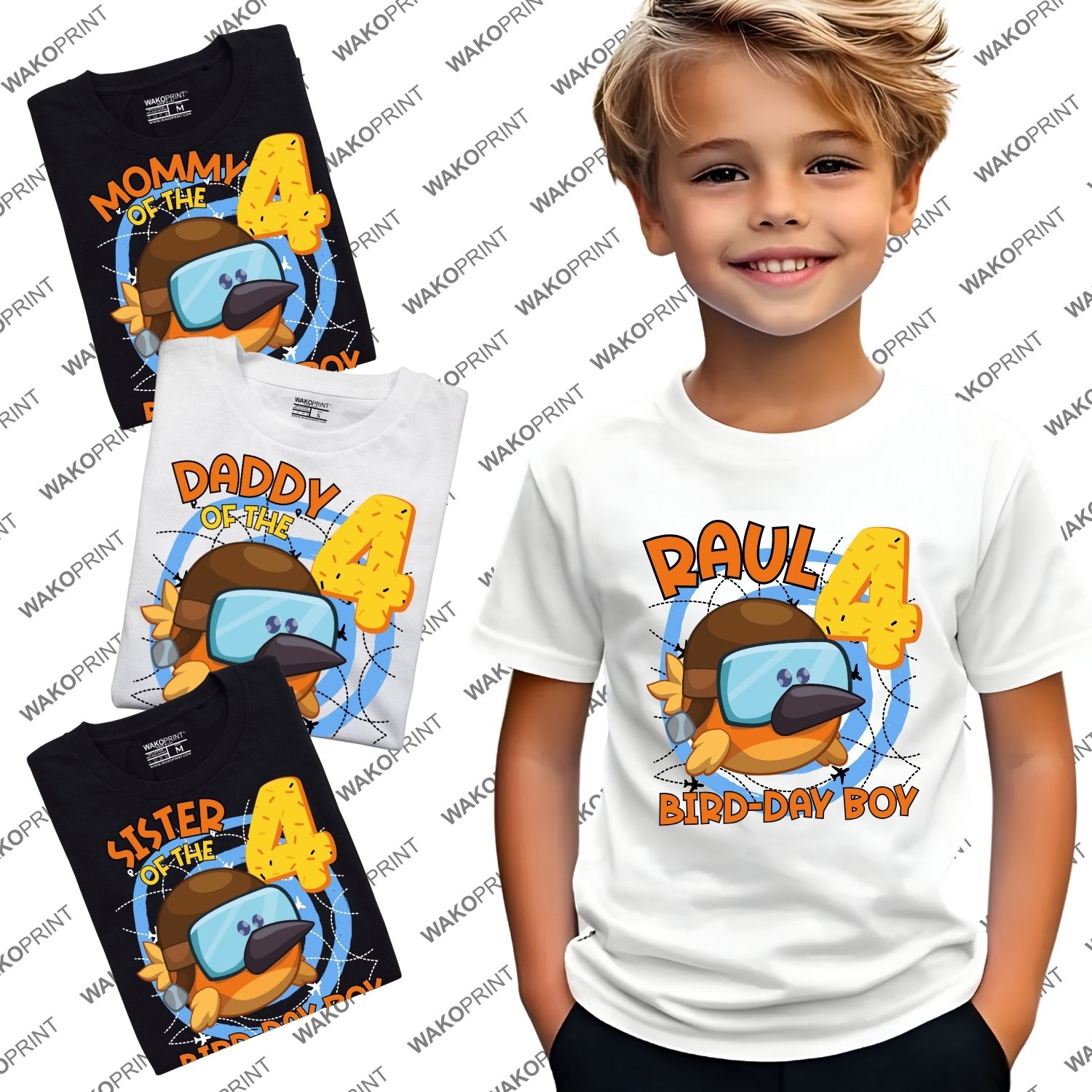 Personalized Bird Birthday T-Shirt | Custom Name and Age | Colorful Cartoon Birds Party Outfit for Boys | Kids Birthday Celebration Tee | Matching Family Shirts