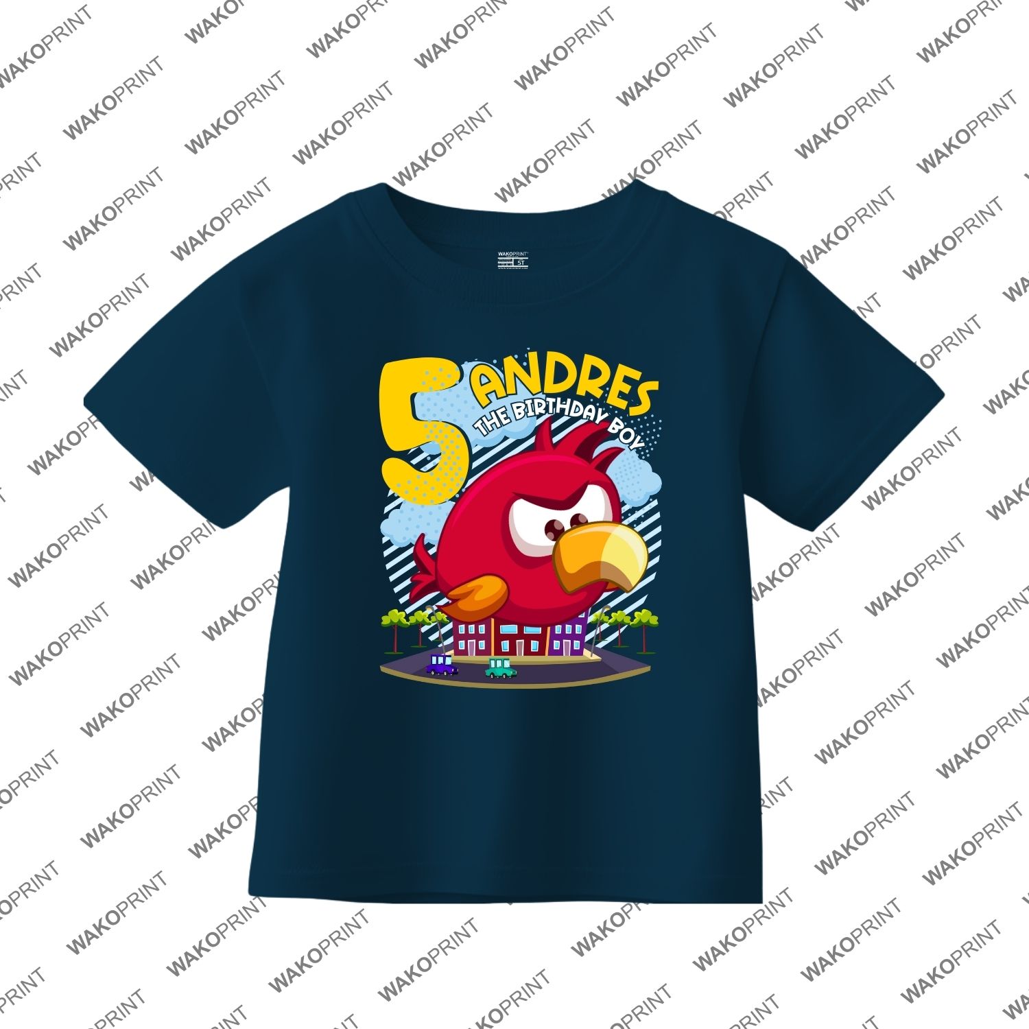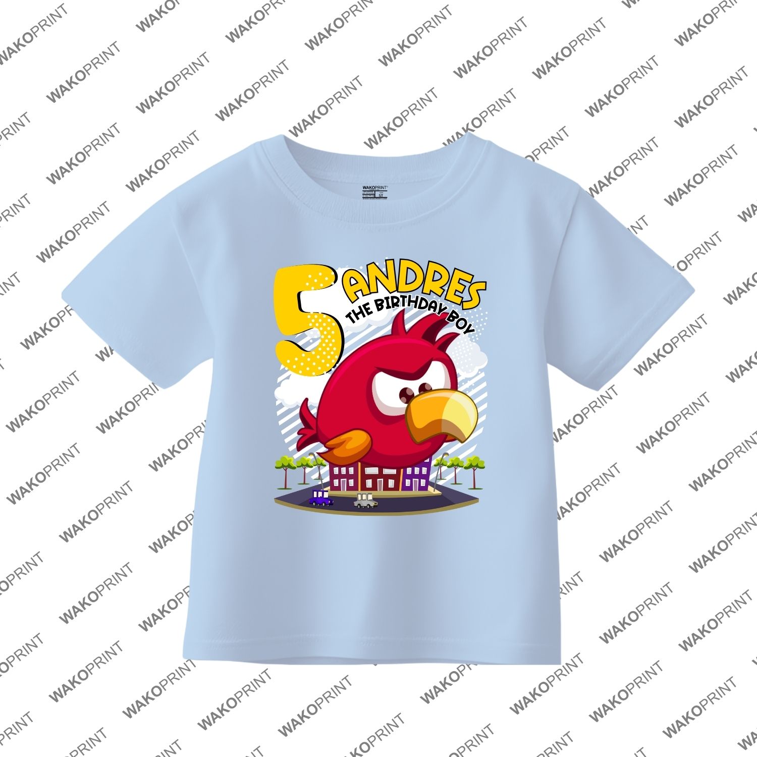 Personalized Birthday Shirt for Boys | Funny Red Bird Design | Custom Name and Age | Add Text on Back | All Sizes 6M–4XL | Black White Natural Light Blue