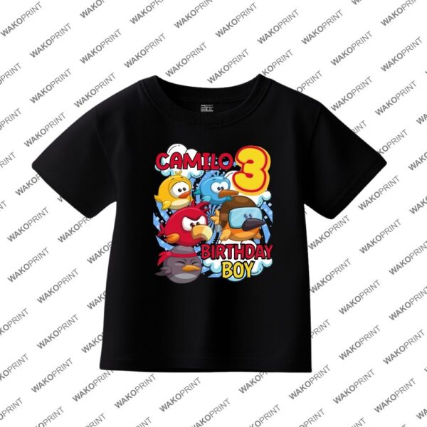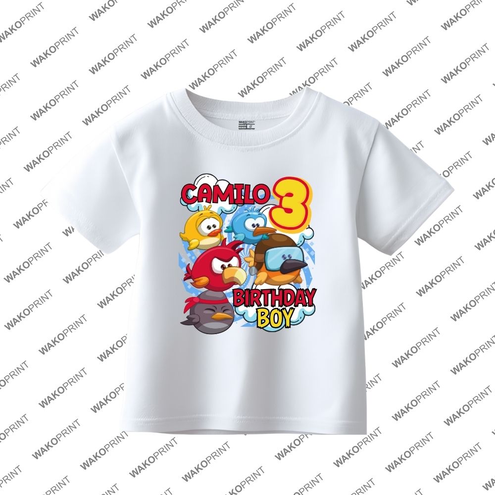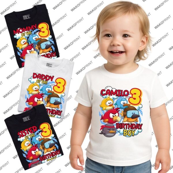 Personalized Bird Birthday T-Shirt | Custom Name and Age | Colorful Cartoon Birds Party Outfit for Boys | Kids Birthday Celebration Tee | Matching Family Shirts