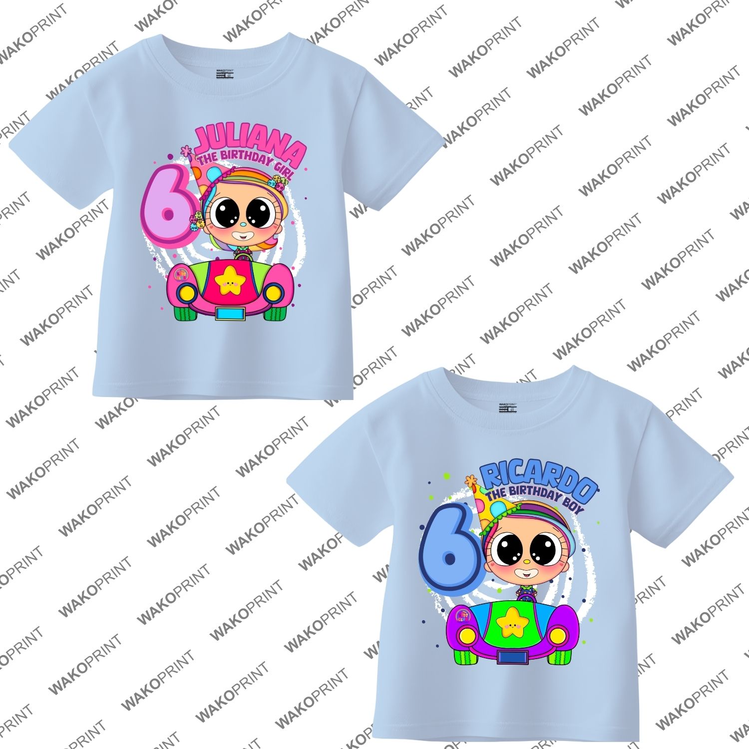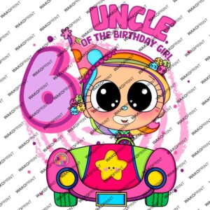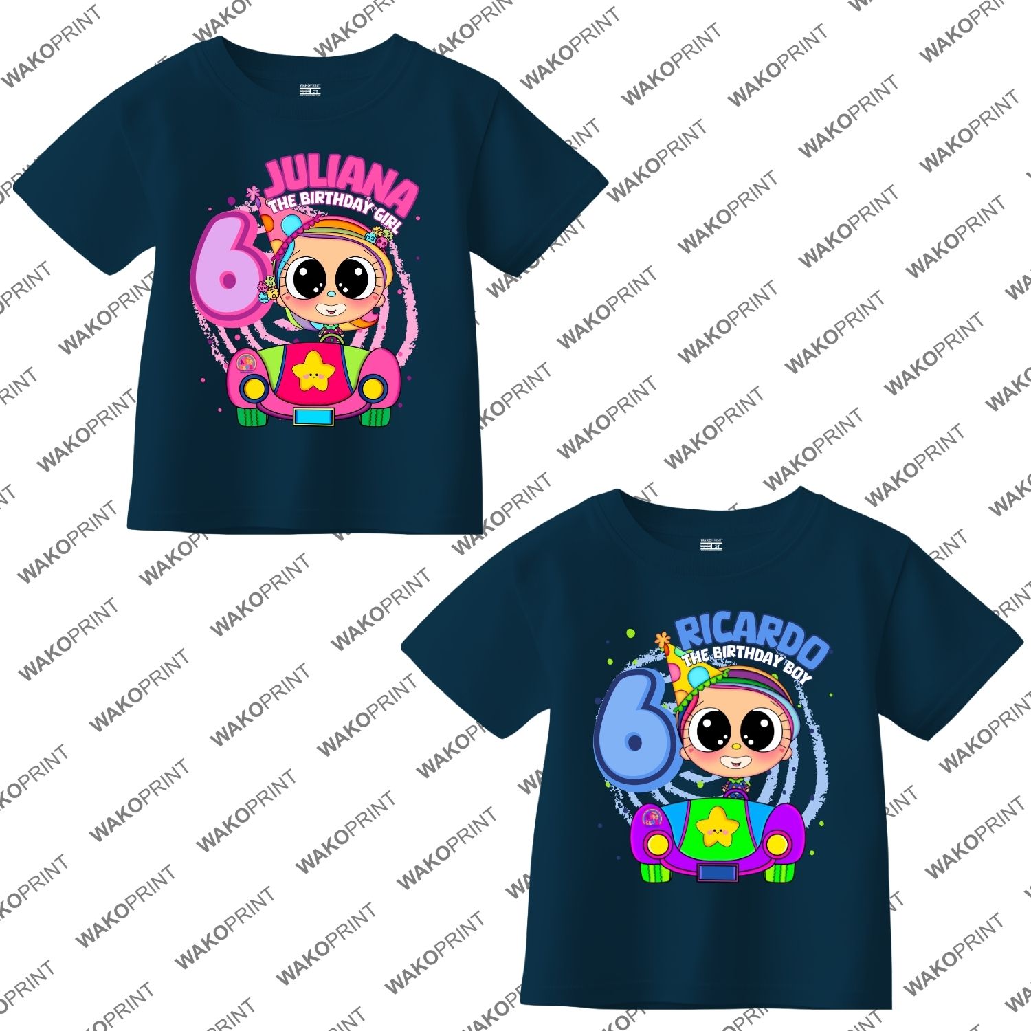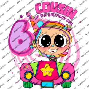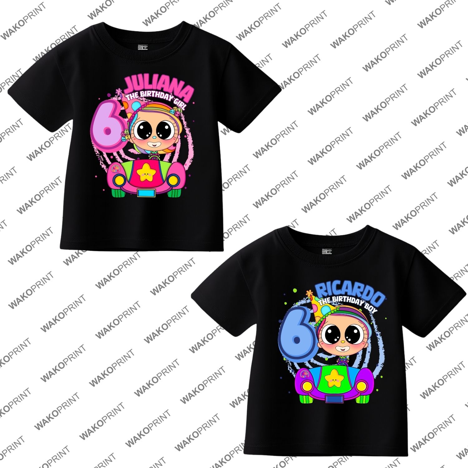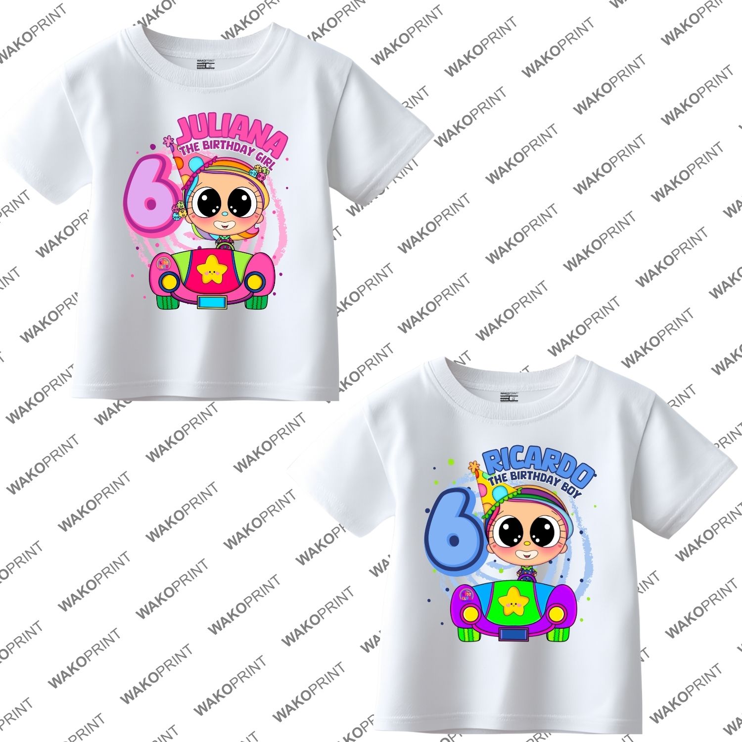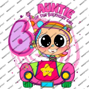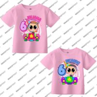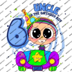 Celebrate a special 6th birthday with this personalized shirt designed for all ages. Featuring a fun cartoon-style character riding a colorful car, this design is perfect for kids, teens, and adults who want to join the celebration. Customize the name on the front and add optional text on the back for a unique and memorable outfit. Made with soft and comfortable fabric, ideal for parties, photos, and keepsakes. Available in multiple colors and sizes from baby 6 months to adult 4XL, perfect for matching family outfits.