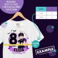 Personalized Birthday Shirt for Girls Inspired by Gothic Doll Style | Custom Name and Age | Matching Family Shirts | Add Text or Number on Back 6M–4XL | White,Black